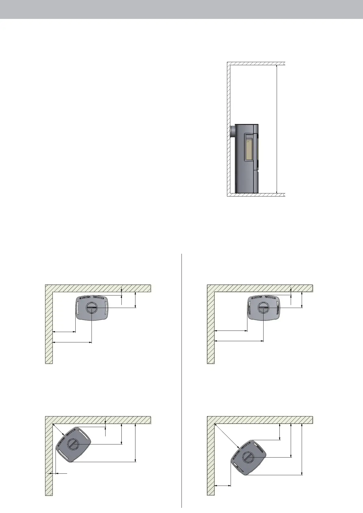 The distances presuppose the use of an insulated flue pipe with min. 30 insulation all the way to the stove.