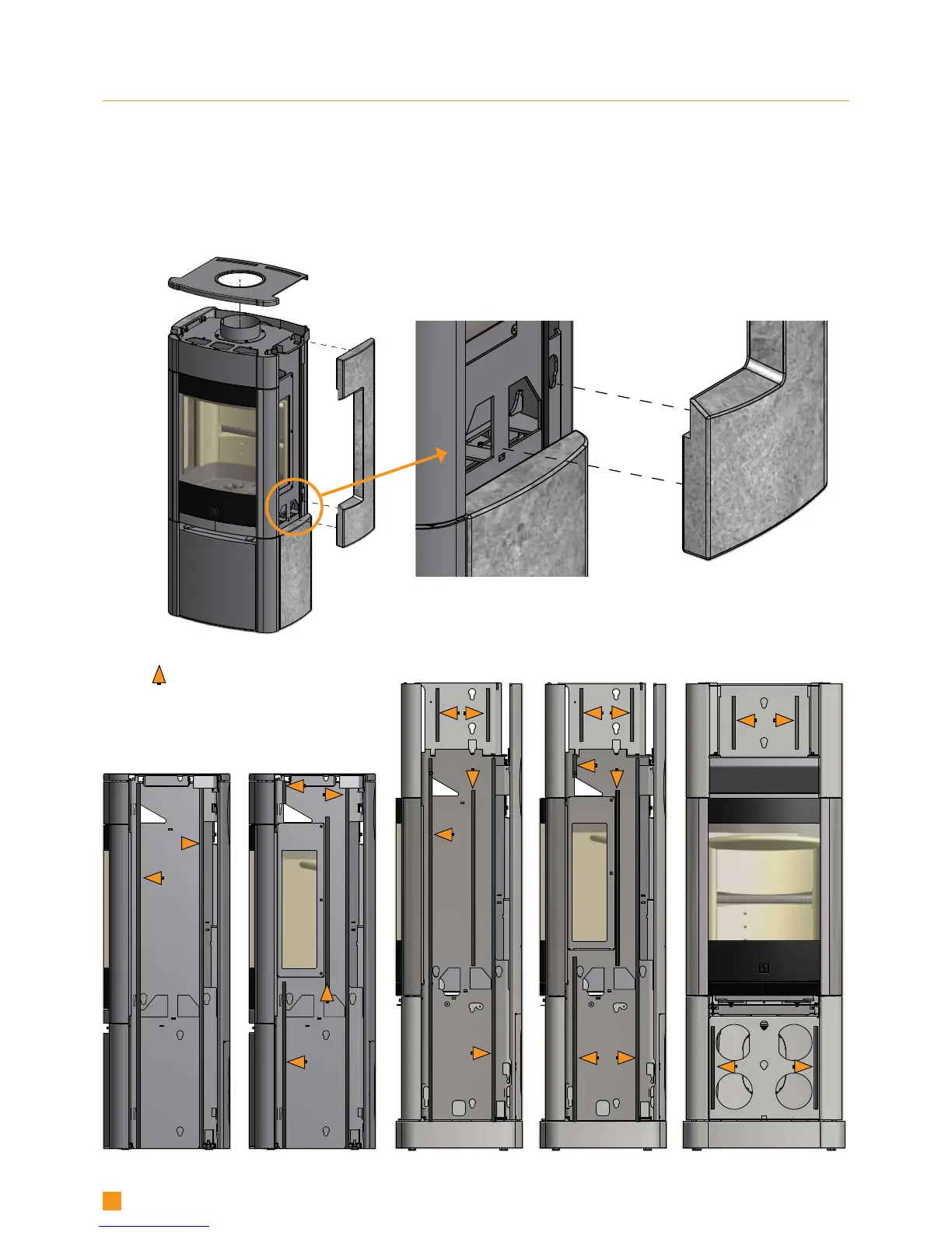Scan 65-3, 65-4, 65-7 and 65-8 are delivered with loose natural stone plates for mounting on the sides of the stove.