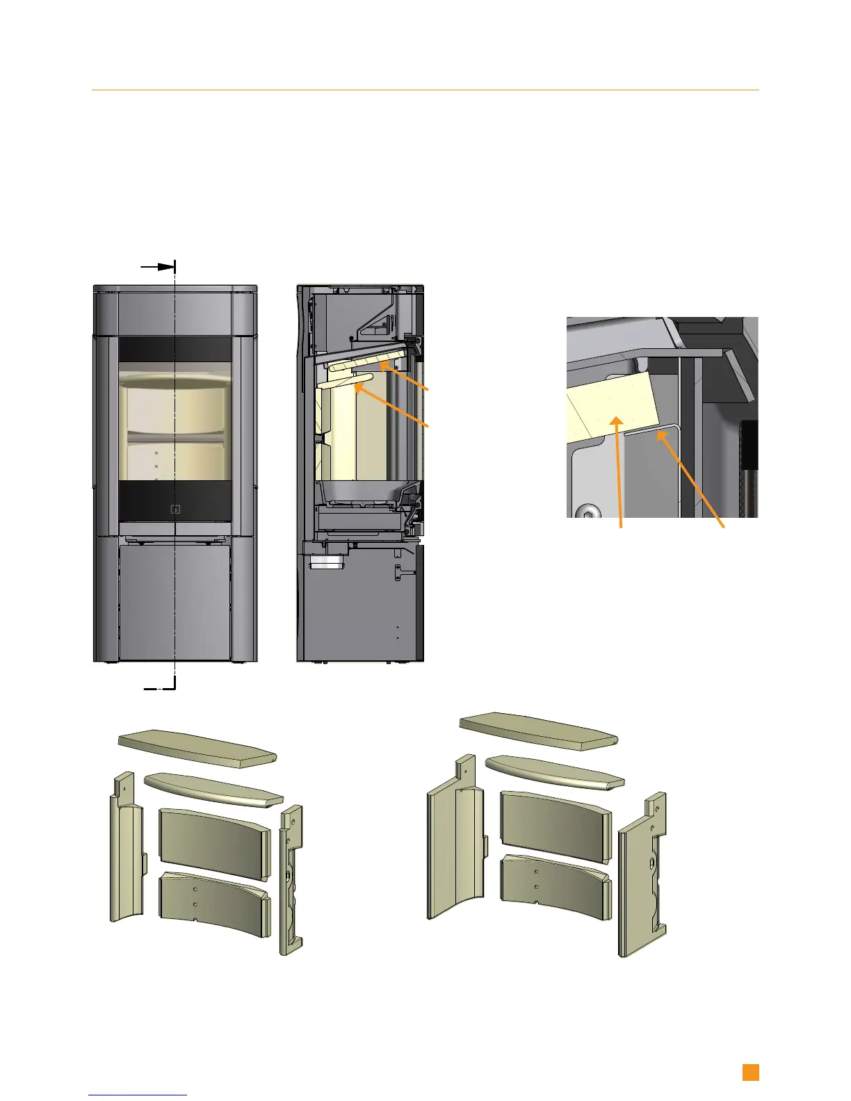 ¬ Lift the combustion chamber lining’s sides, remove them from the rear cover and take them out. Note that the combustion