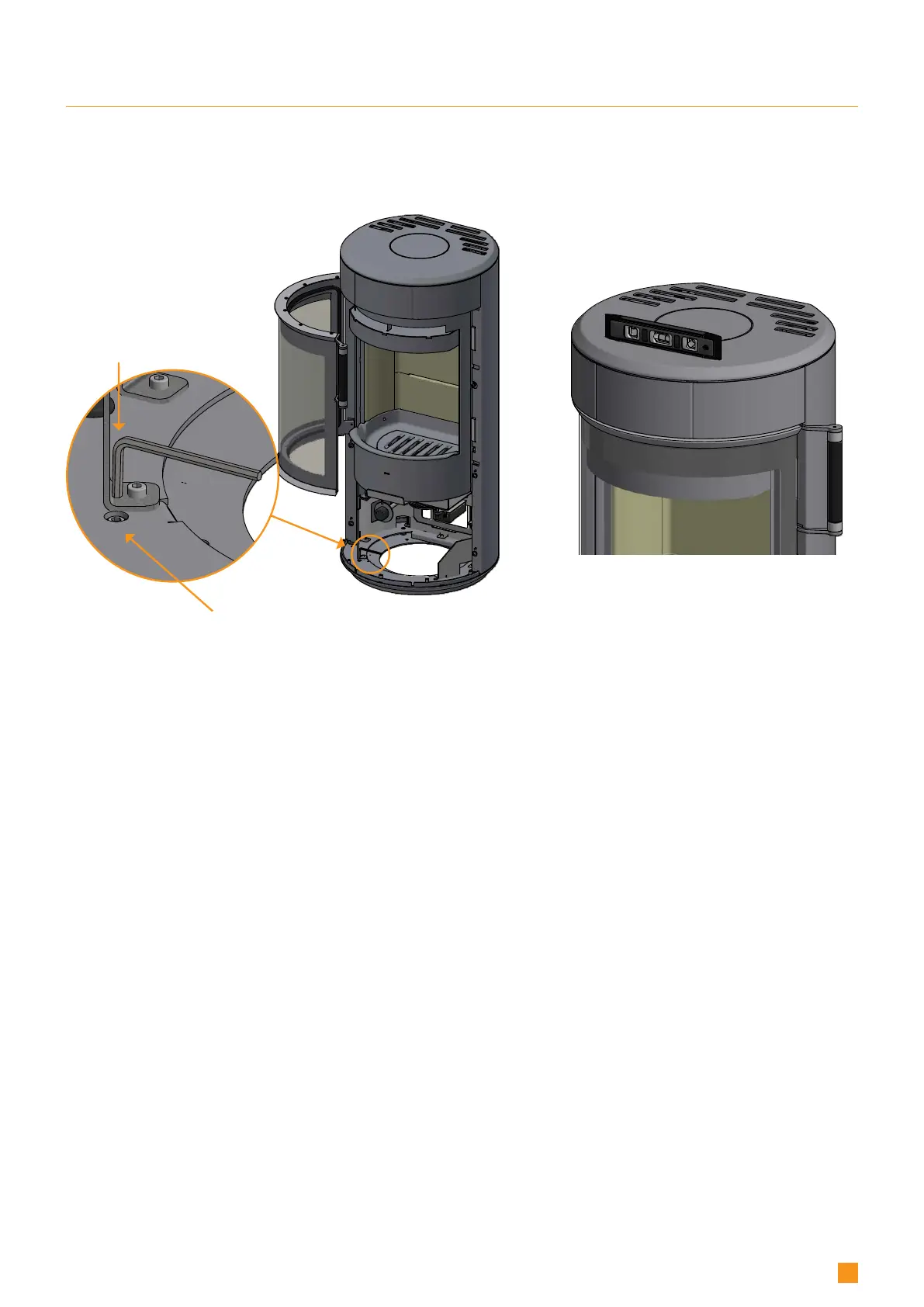 NOTICE: It is very important that the stove is level to allow an optimal function of the door. Please note that once mounted the
