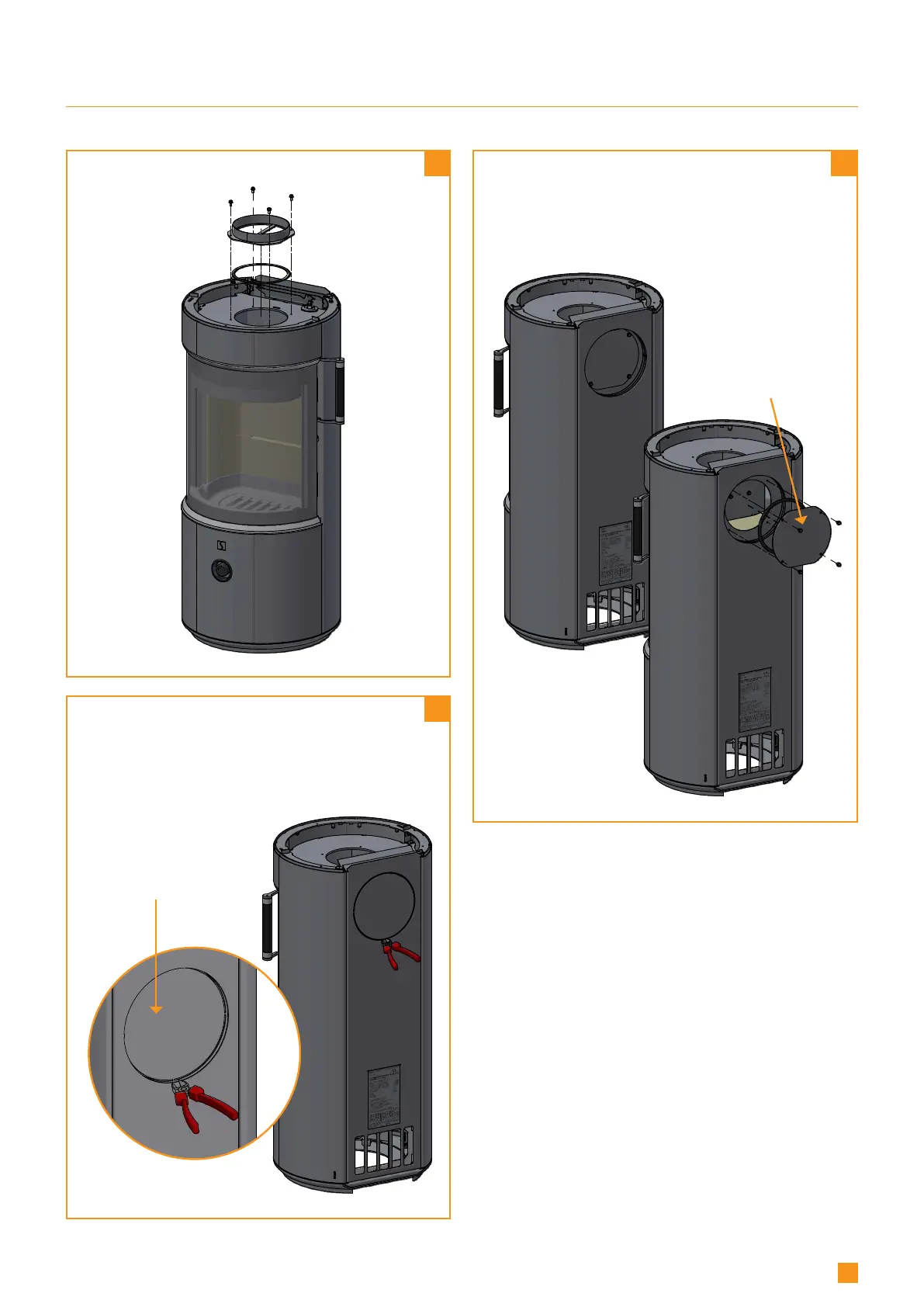 The stove is prepared from the factory for top outlet for inside flue pipe.
