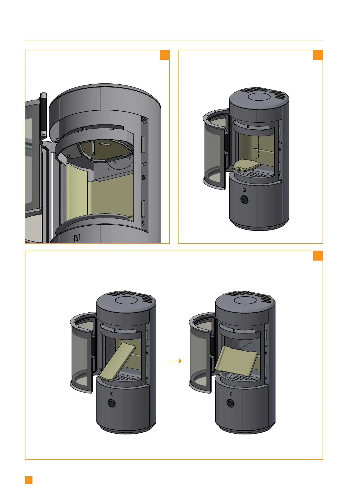 Carefully lift the sides and rear plates of the combustion chamber lining out of the stove