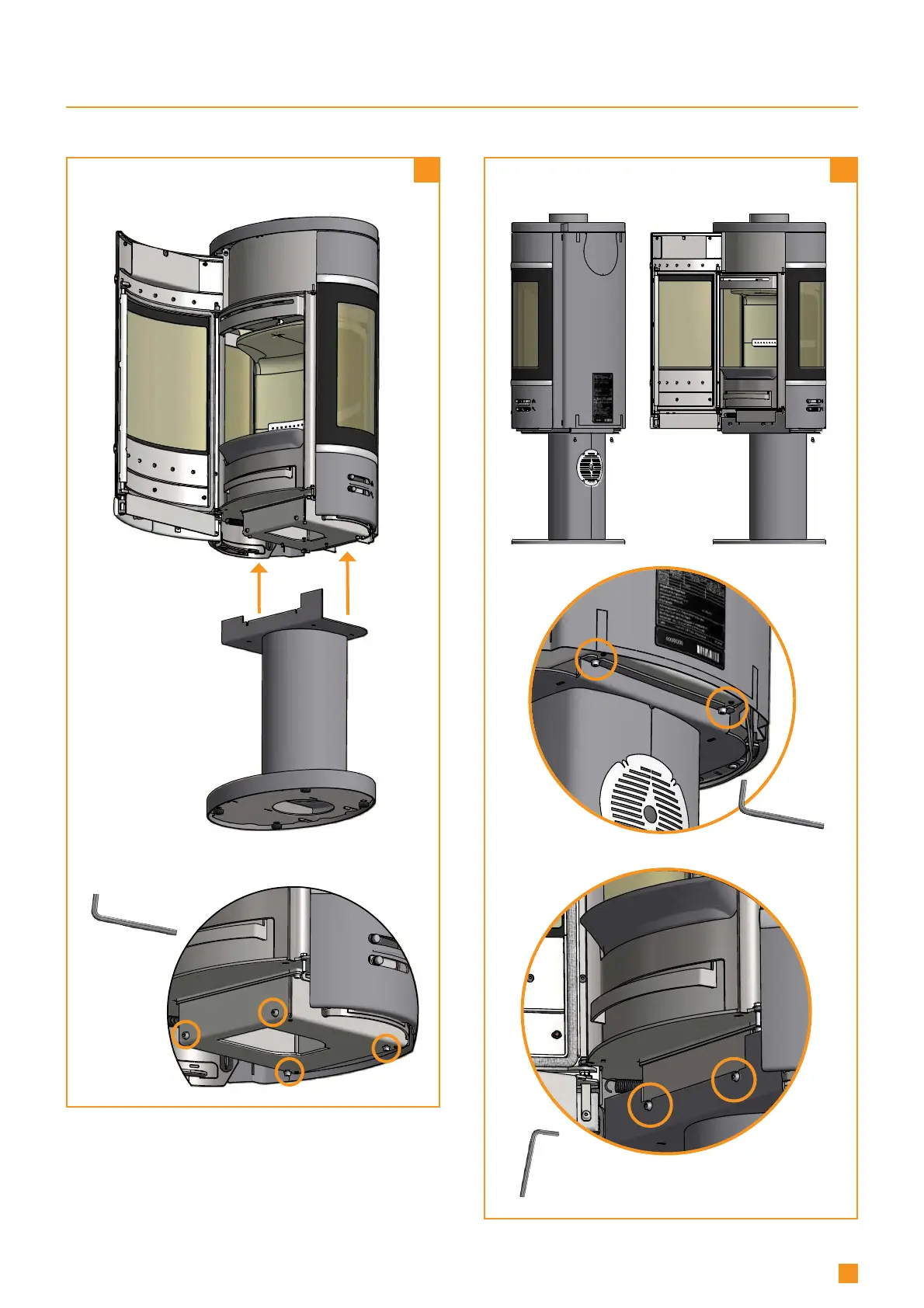 The stove is delivered with the screws mounted.
