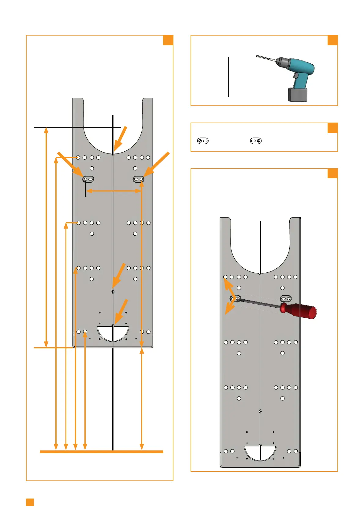 Measure from the vertical line and drill the holes