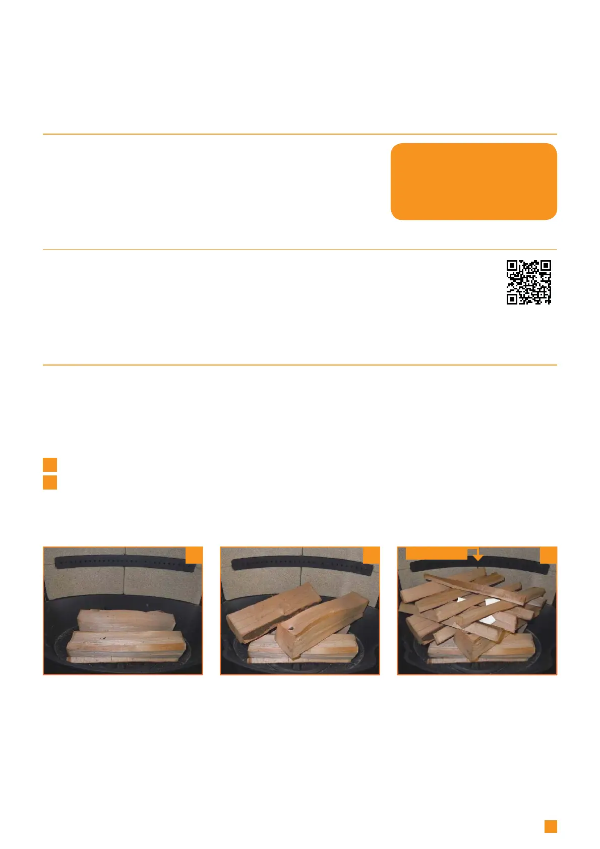 Place the pieces of wood, firewood and fire lighters in the combustion chamber as shown below