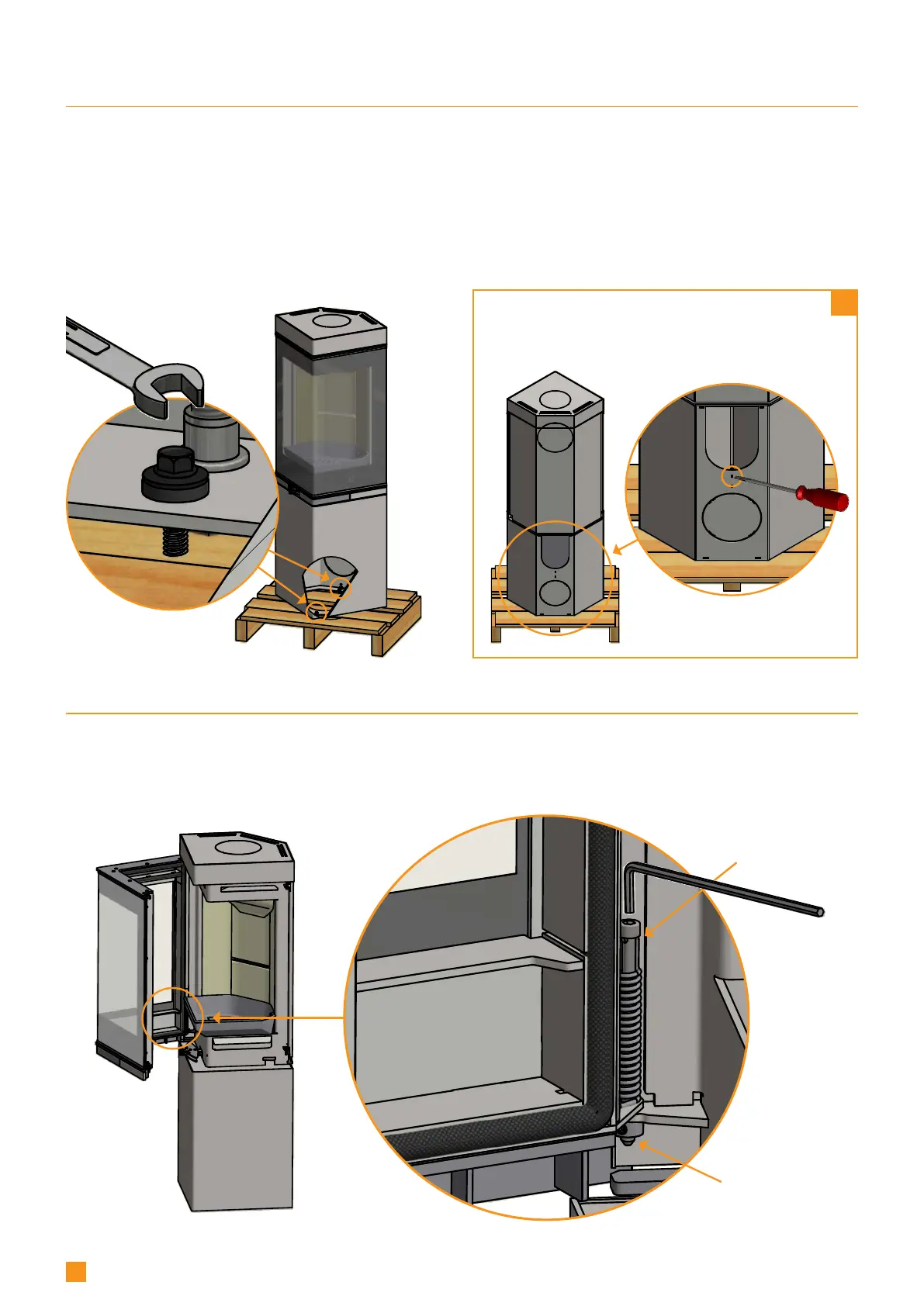 NOTE: The stove must be taken off the pallet by dismounting the screws. Do not knock off the pallet, as this can damage the stove.