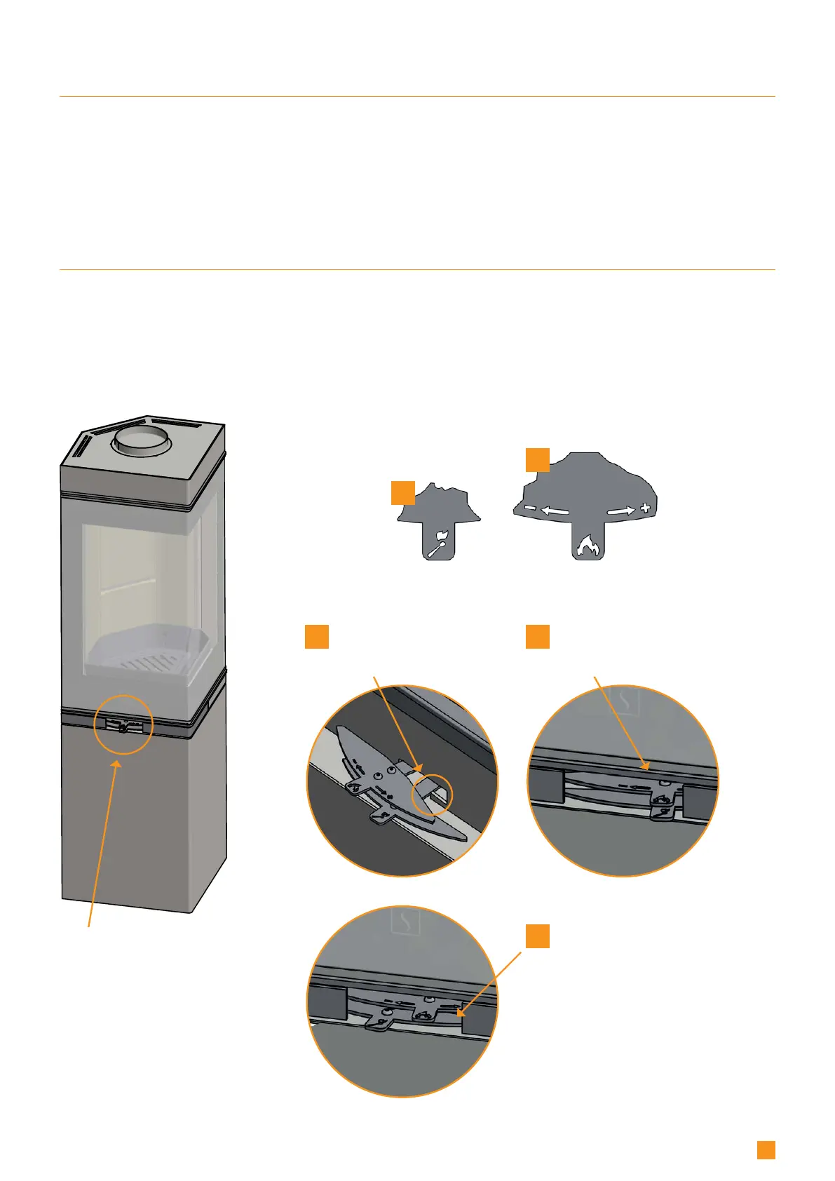 When firing a cold stove, pull both dampers to the right. The primary air damper will meet a stop (3).