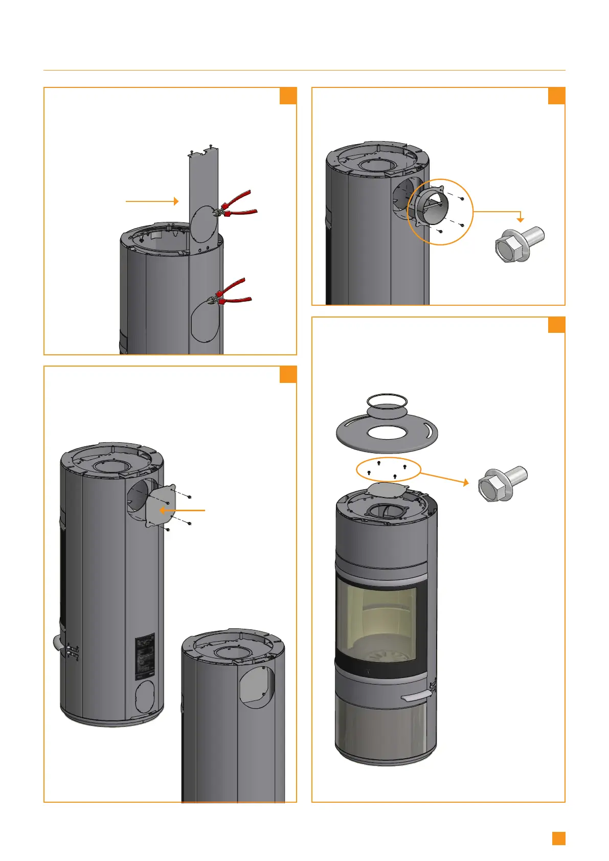 FITTING THE FLUE CONNECTION PIECE IN THE REAR OUTLET
