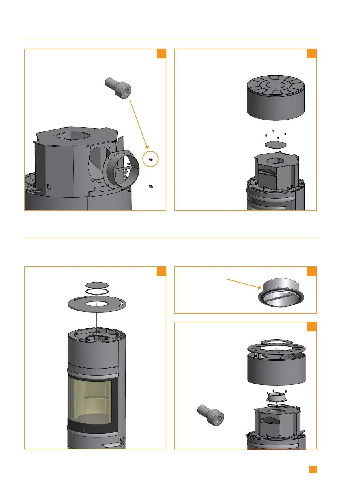 The connecting piece is placed loosely in the top outlet of the stove. The gasket and screws can be found in the stove’s