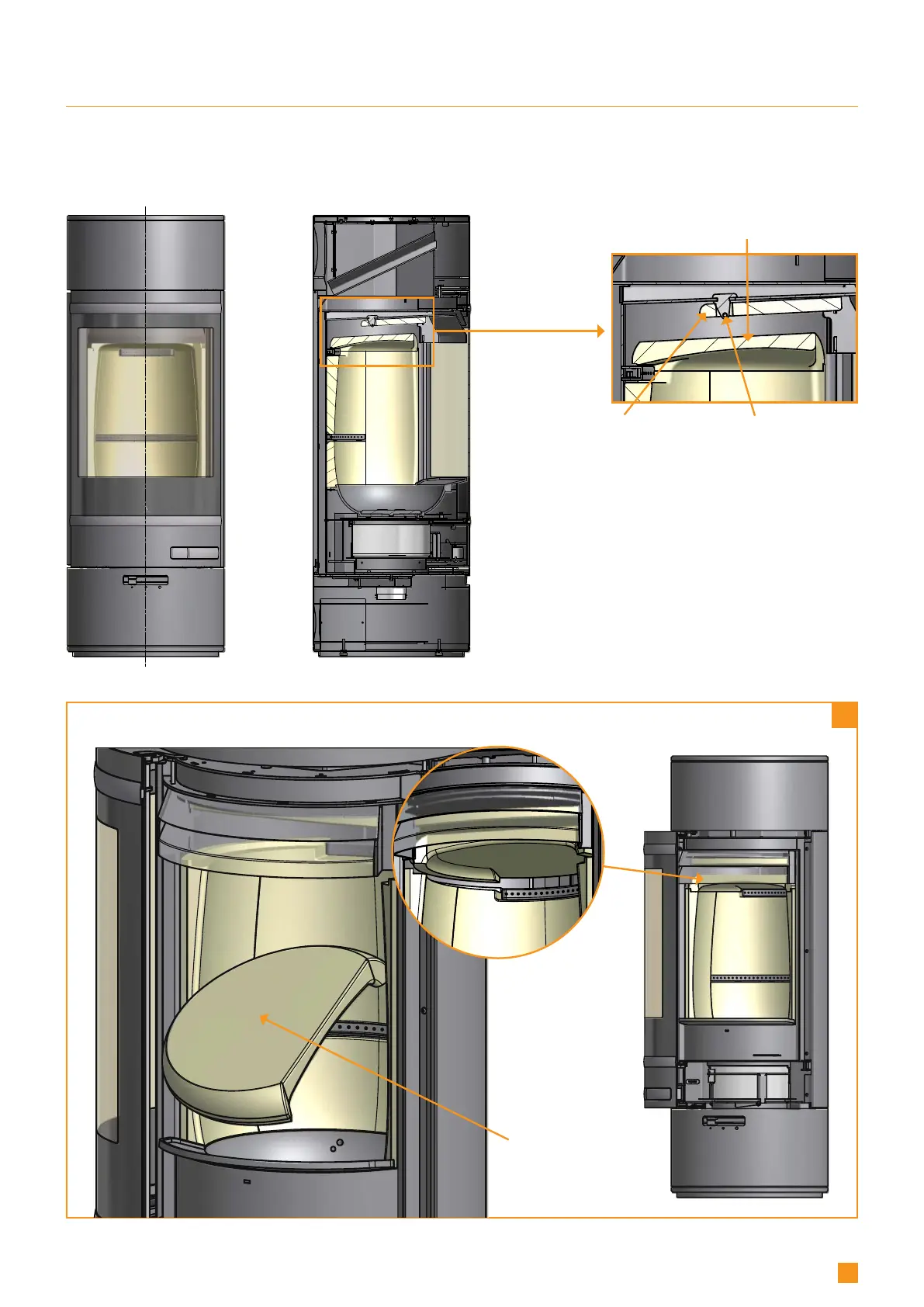Lift the lower baffle plate. Turn the baffle plate 90°, and edge it out through the combustion chamber