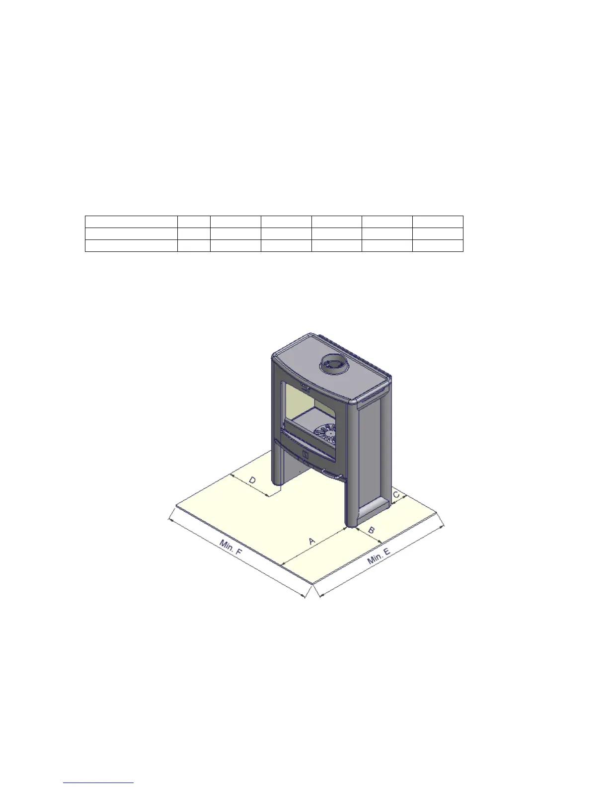 between the stove (top, sides, back, front, and under stove pipes) and any other material that can