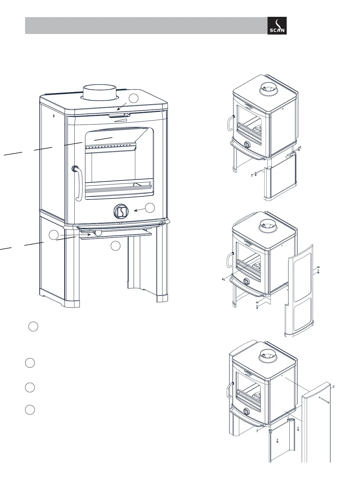 2 Handle for shaking grate. The stove is equipped with a shaking