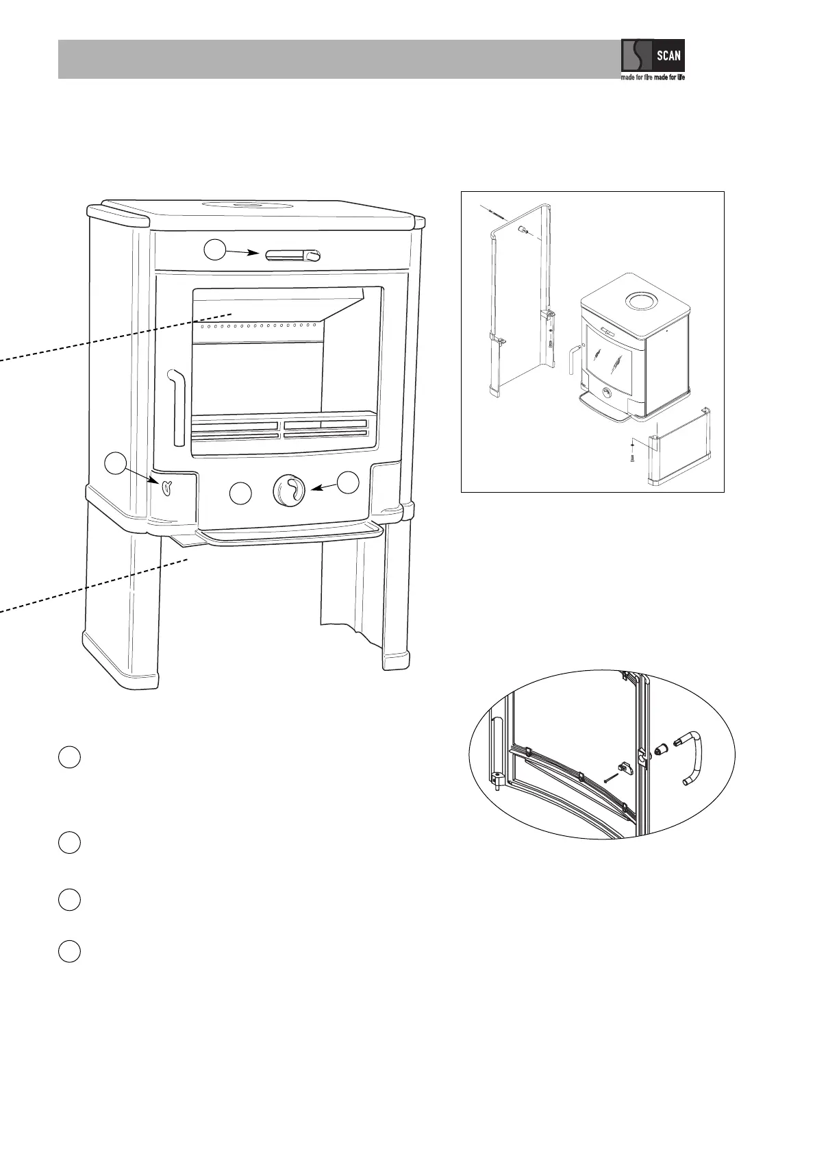2 Handle for shaking grate. The stove is equipped with a shaking