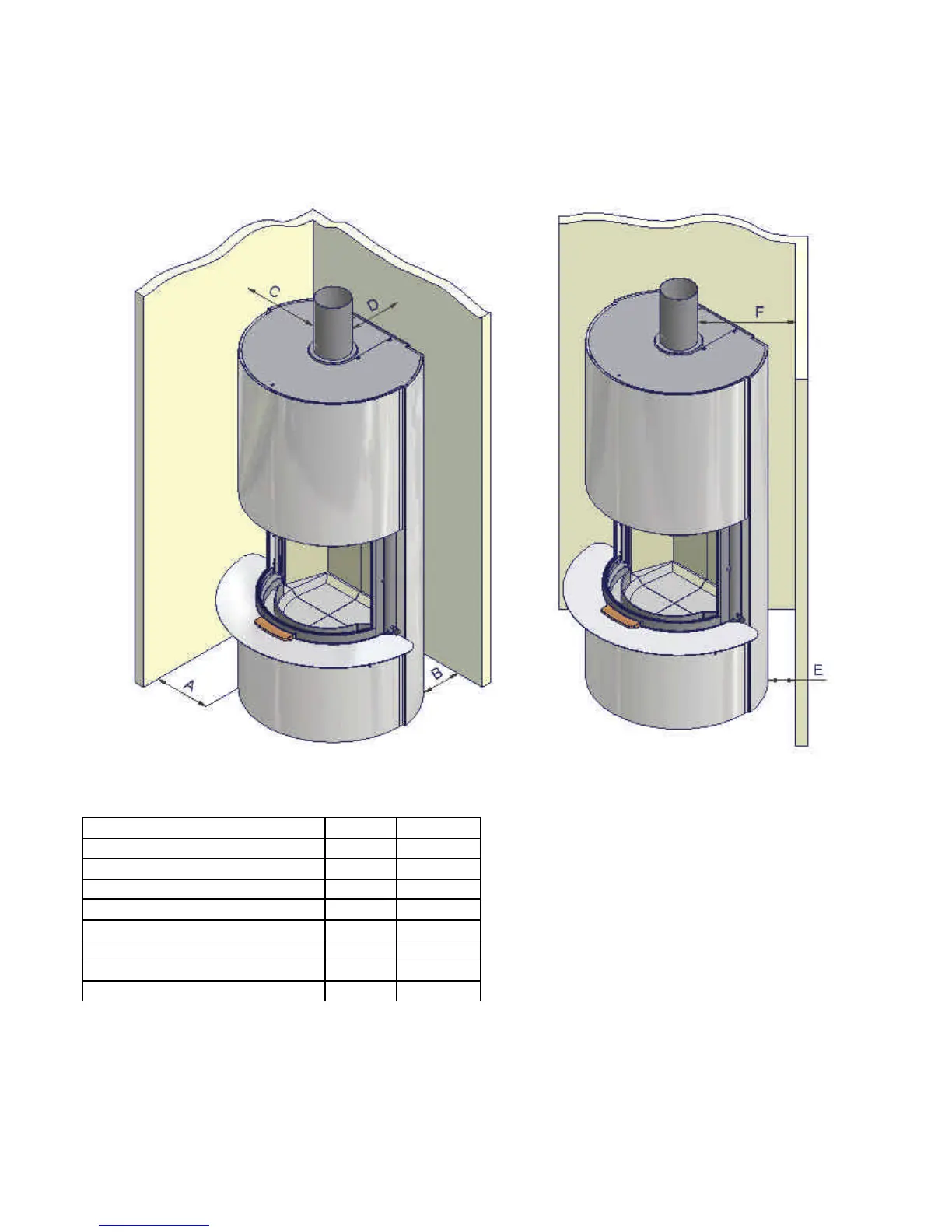 If the stove is to be placed at side and back walls of combustible materials the following clearances