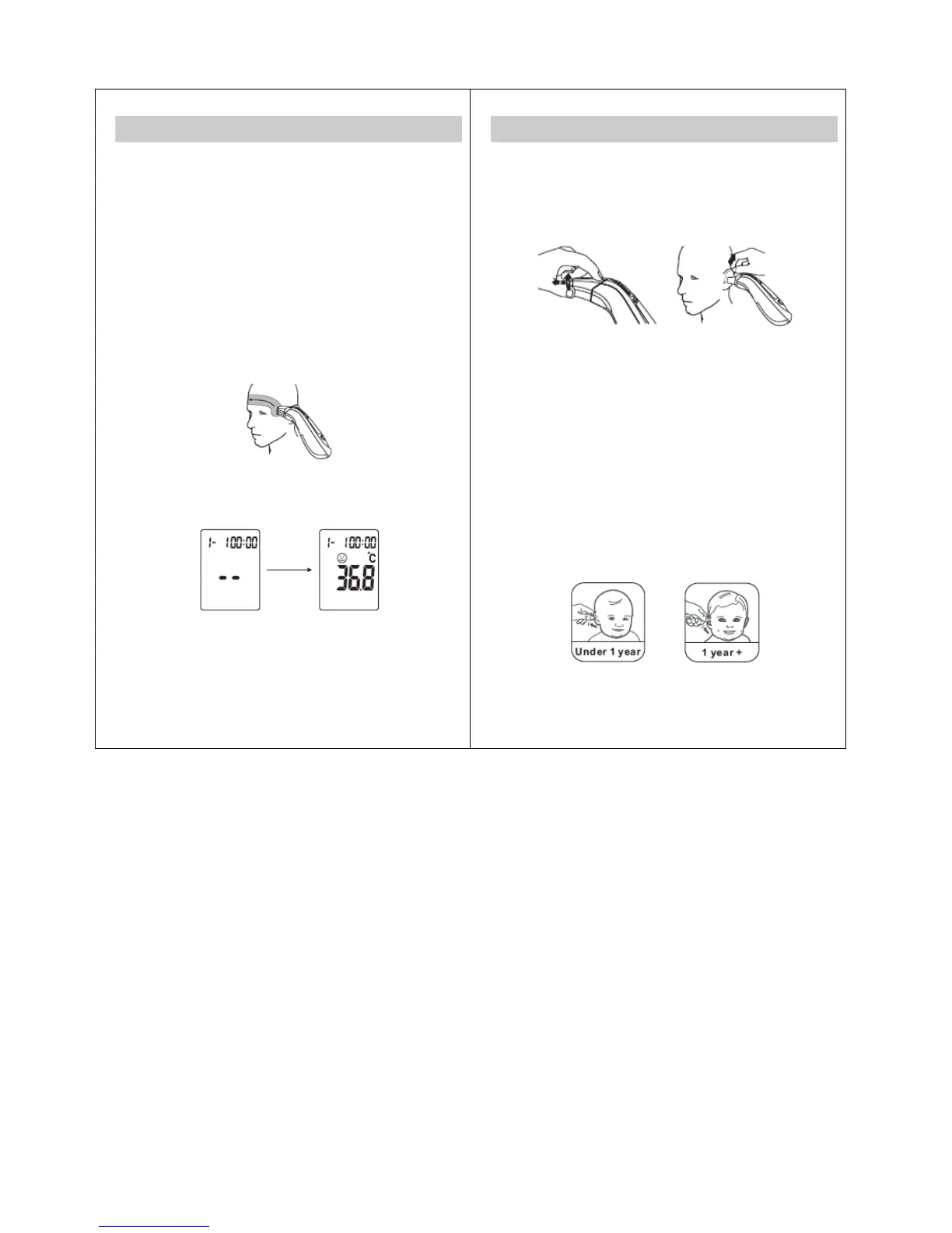 fitted on the temples, hold on the Forehead mode Button