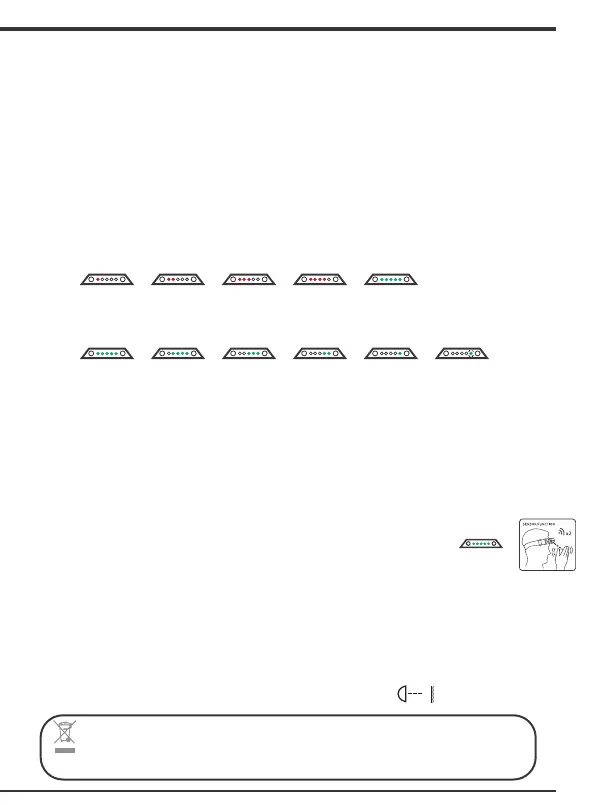 • Alle 5 LED’er vil blinke 5 gange, hvis pandelampen slukkes på grund af overophedning.
