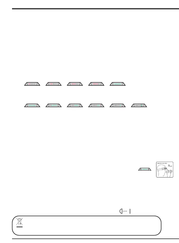 • Wenn die Stirnlampe geladen wird, leuchten die LEDs nach folgendem Muster rot.