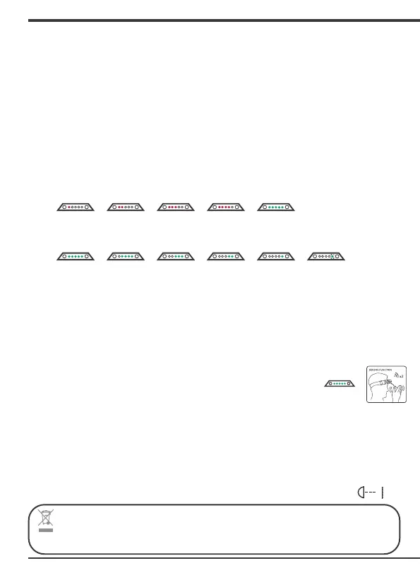 • Durante la ricarica della lampada frontale, i LED si illuminano in rosso secondo il modello riportato di seguito.