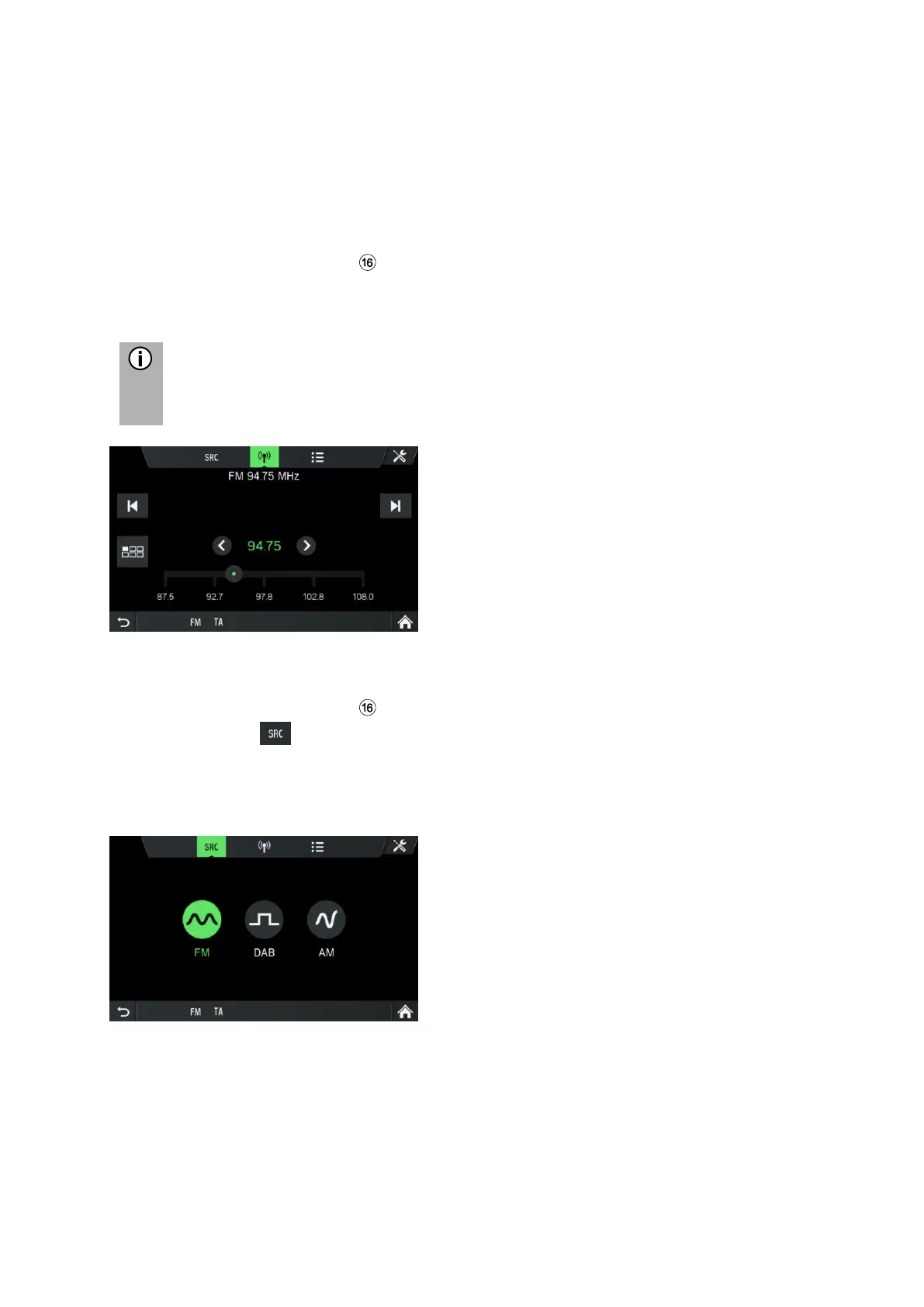 You can only use the touch screen to select or activate the menu items in the Radio