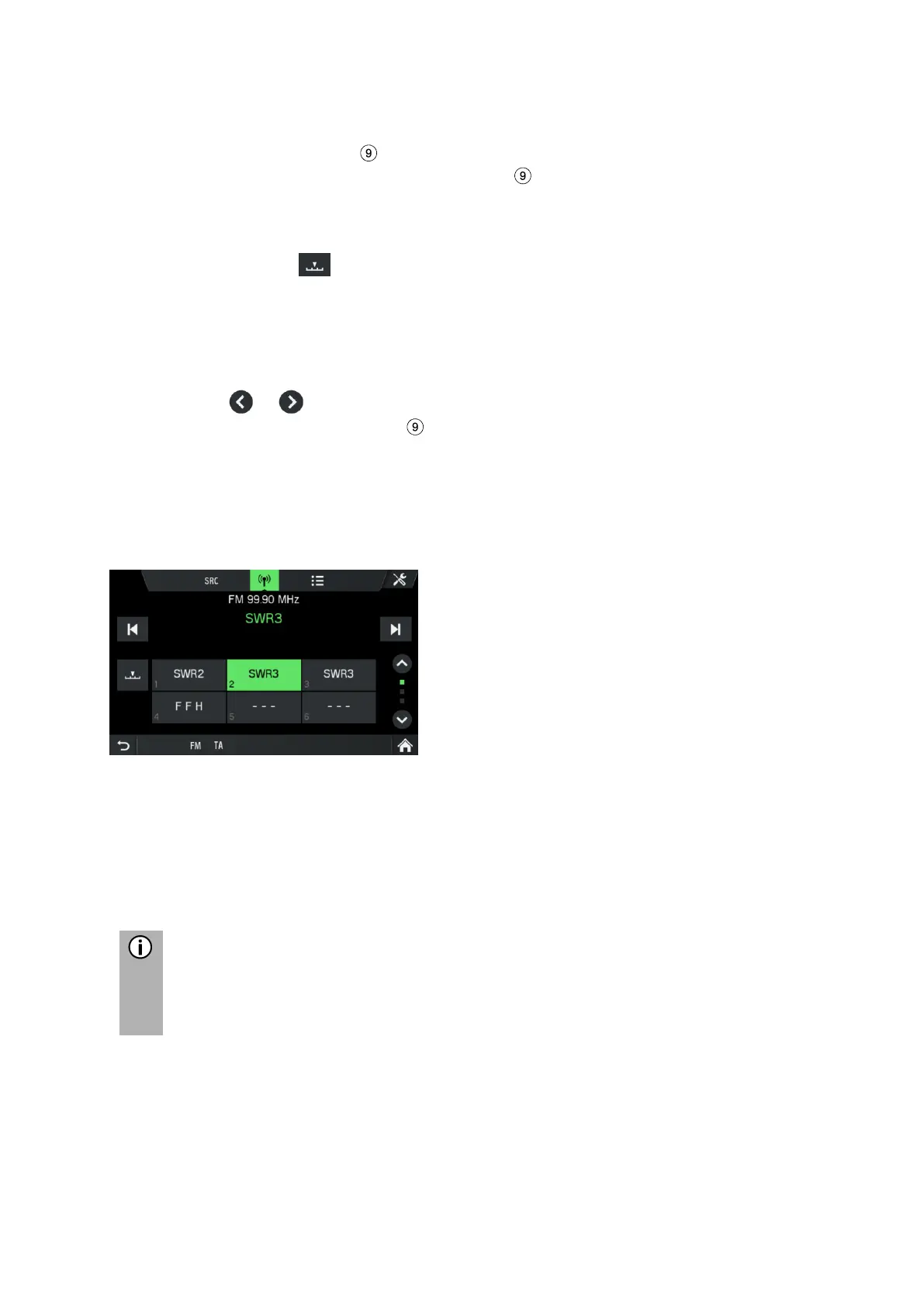 • In the radio menu, turn the rotary encoder clockwise or counter-clockwise to