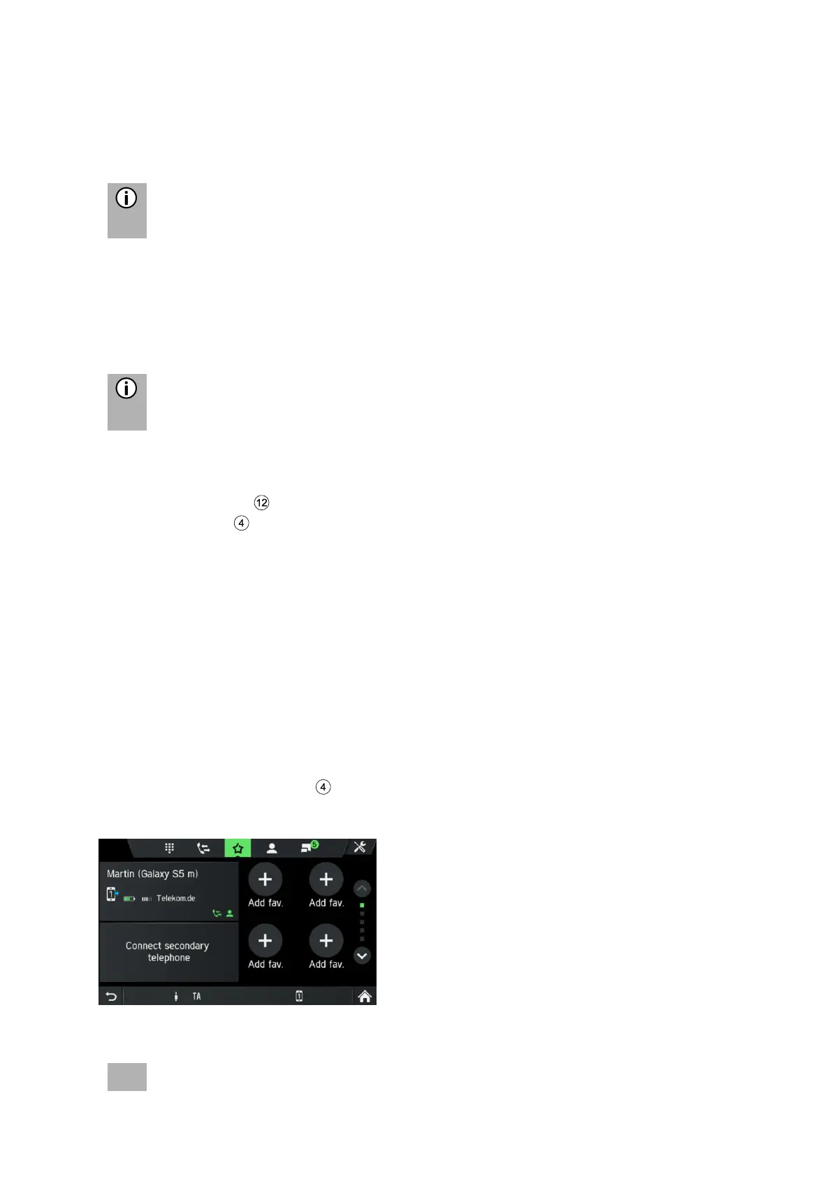 • The mobile telephone must be connected to the infotainment system. For