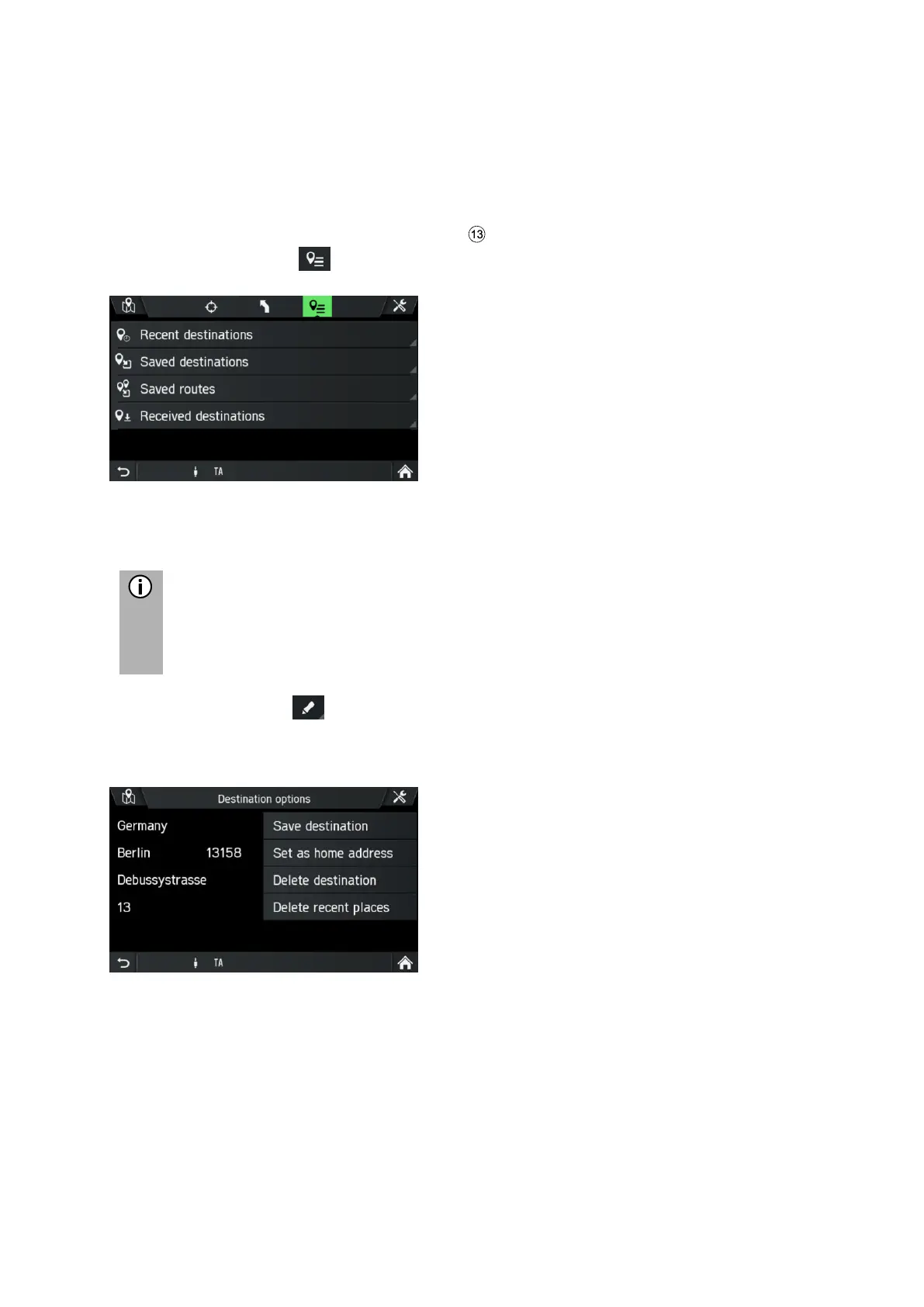 Tap this option to save the displayed destination data in the address book.