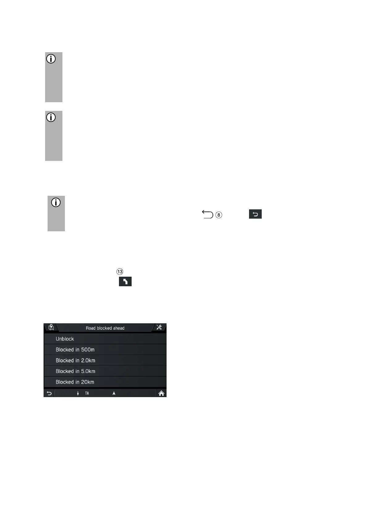 Use this menu to exclude selected roads in a section of the guidance.