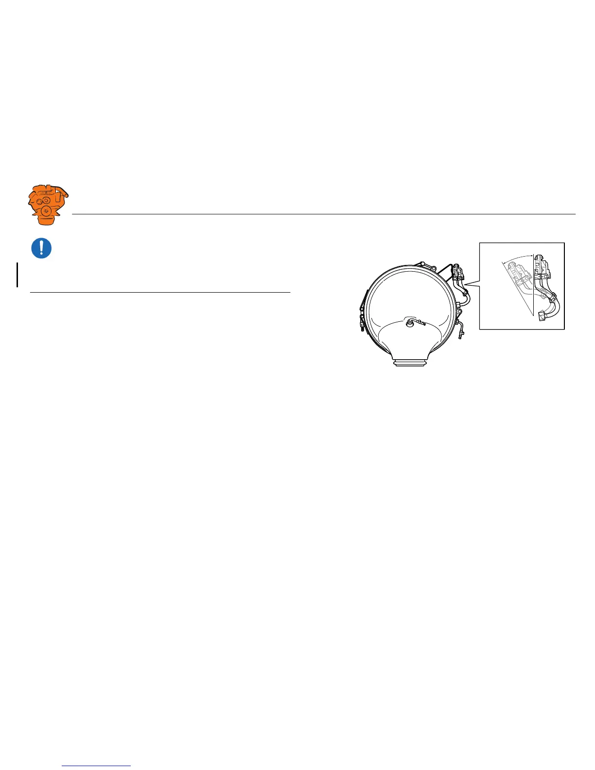 The differential pressure sensor must be slightly inclined when compared to the ver-