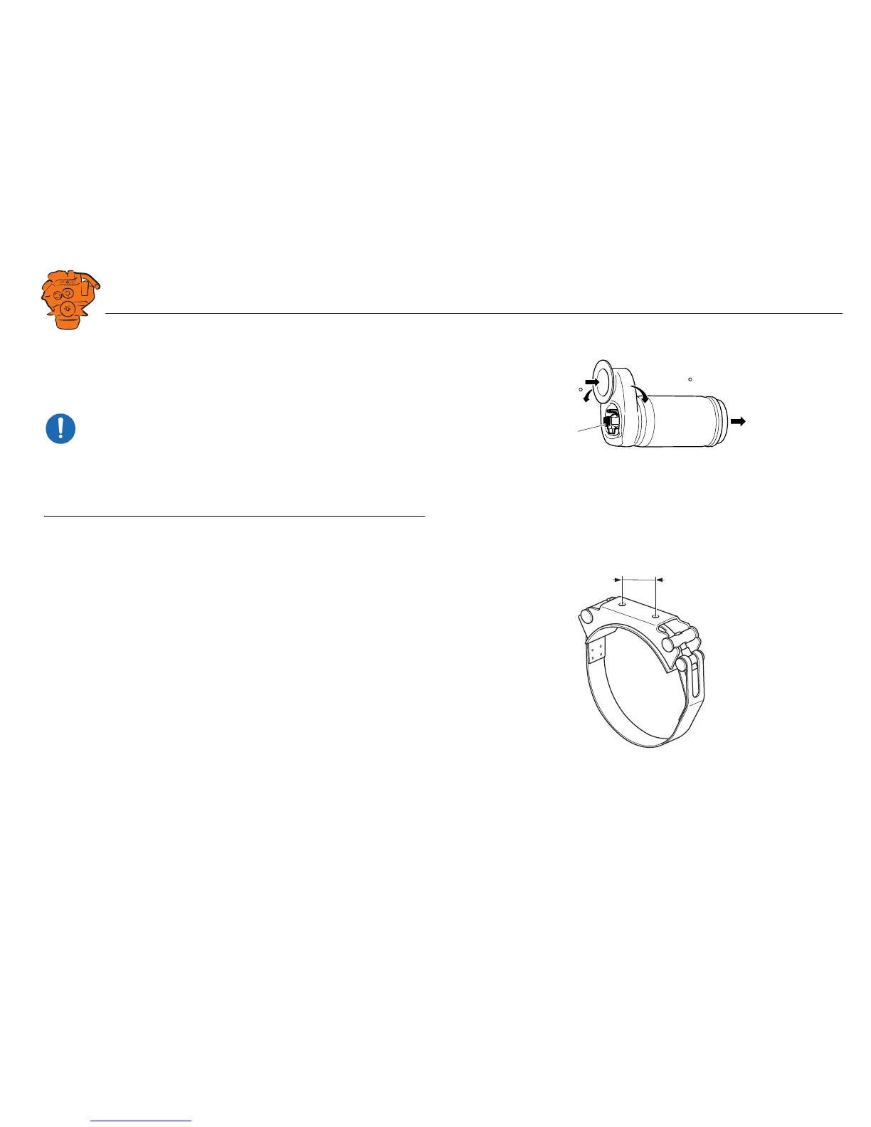 The evaporator must be fitted in the direction of the exhaust gases as illustrated. The