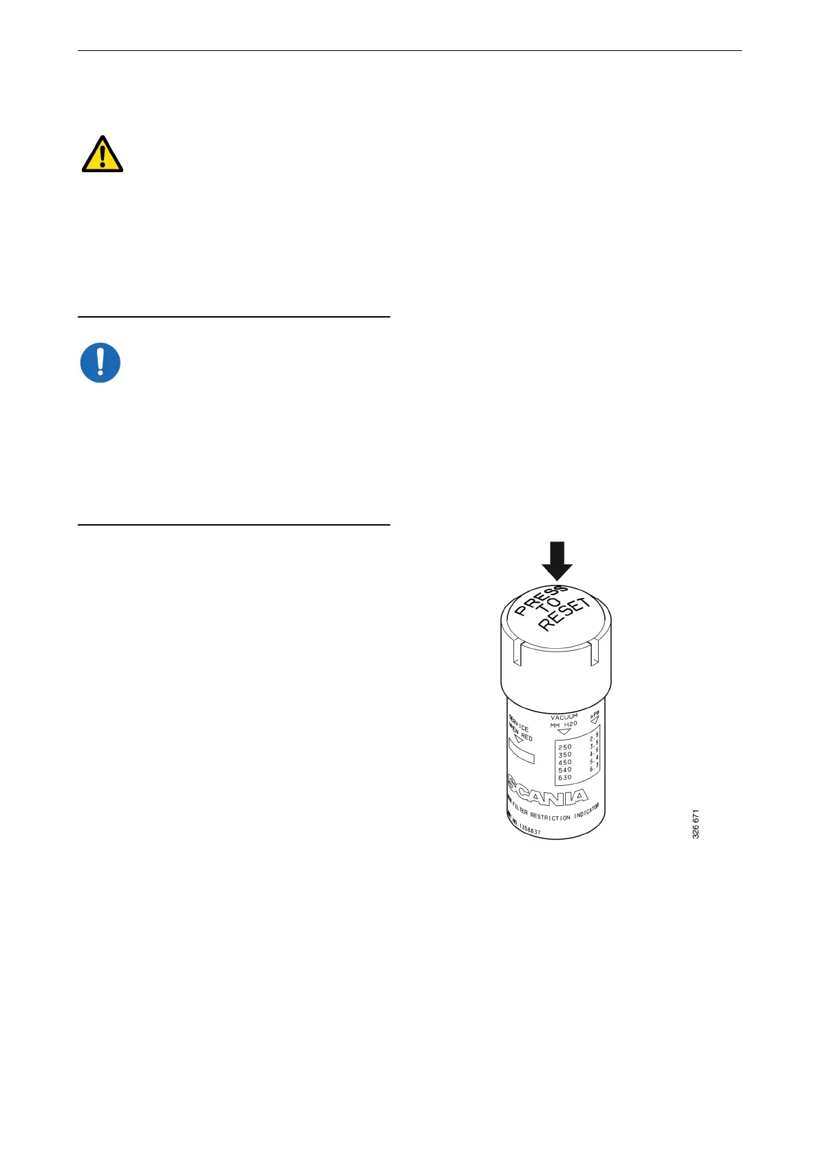 Mechanical vacuum indicator with reset button.