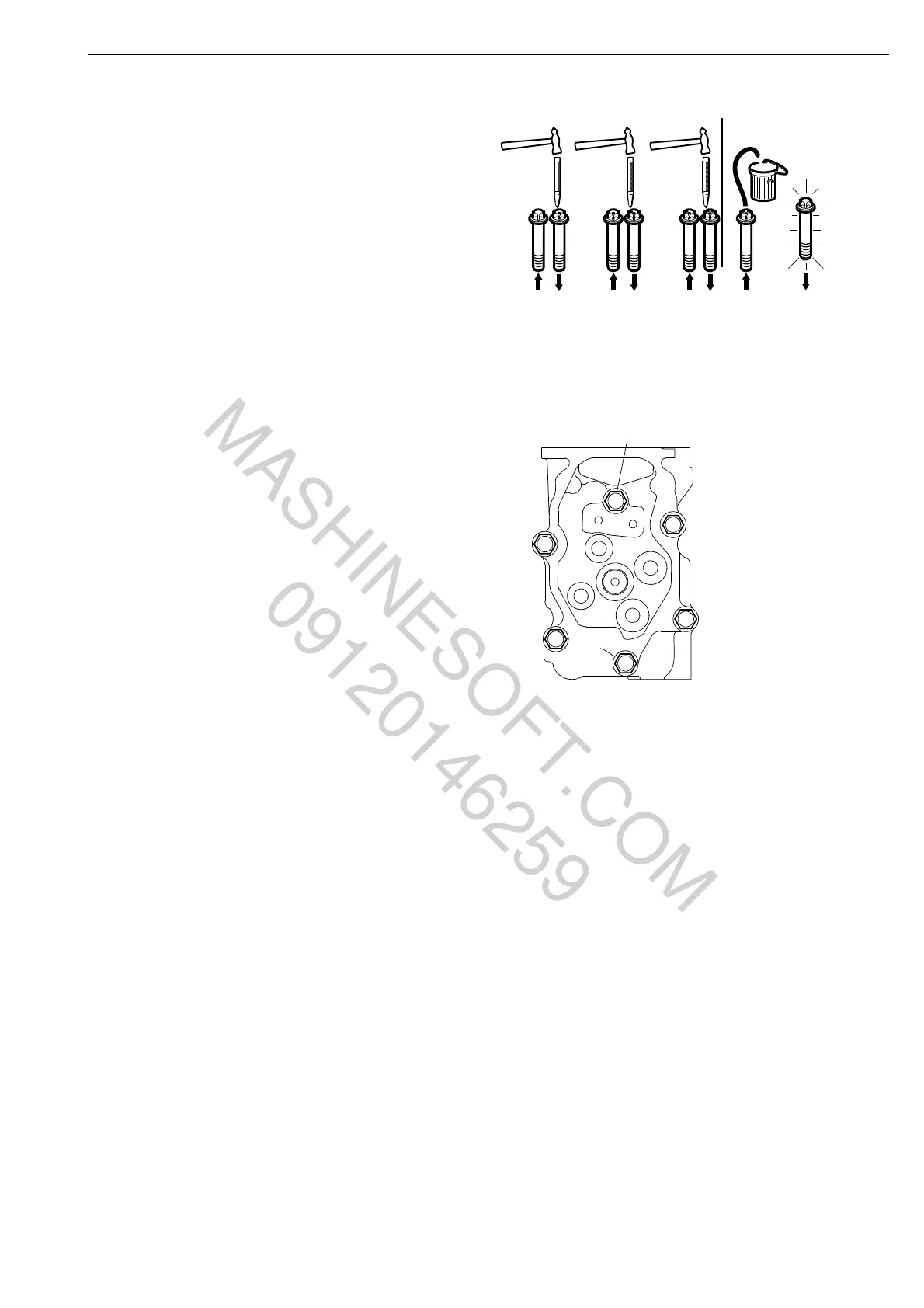 heads of the cylinder head bolts. Tighten
