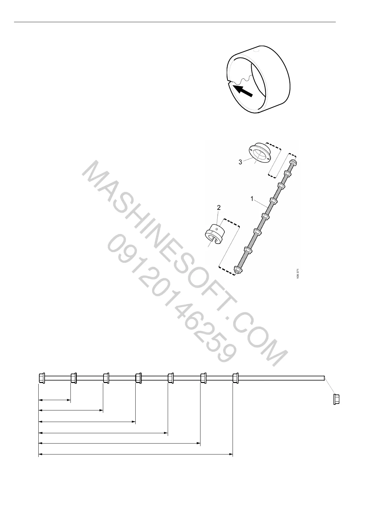 1 Threaded stem with eight flange nuts