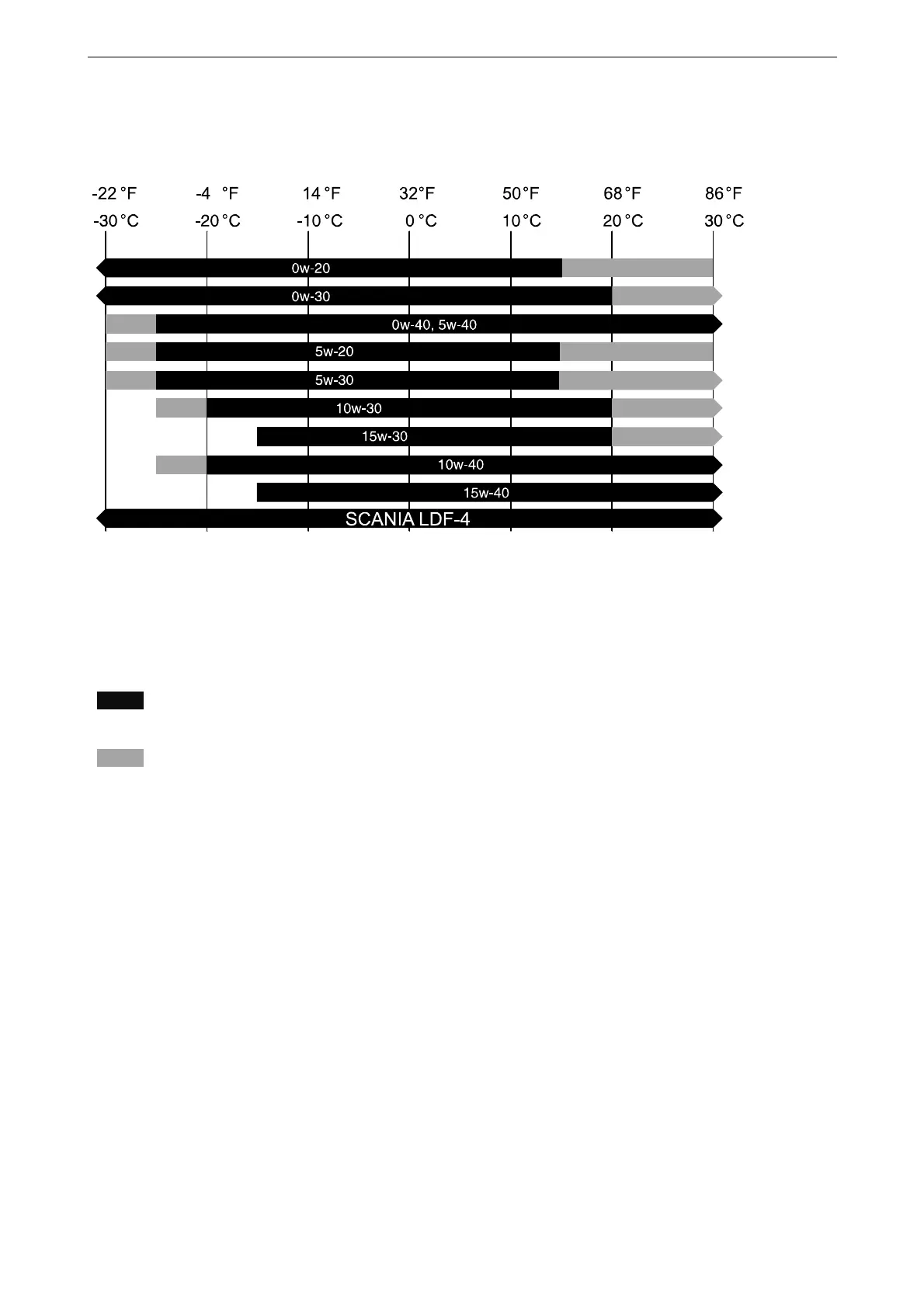 and market approved oil grades. Note that the Scania-approved oil grades have a greater temperature range