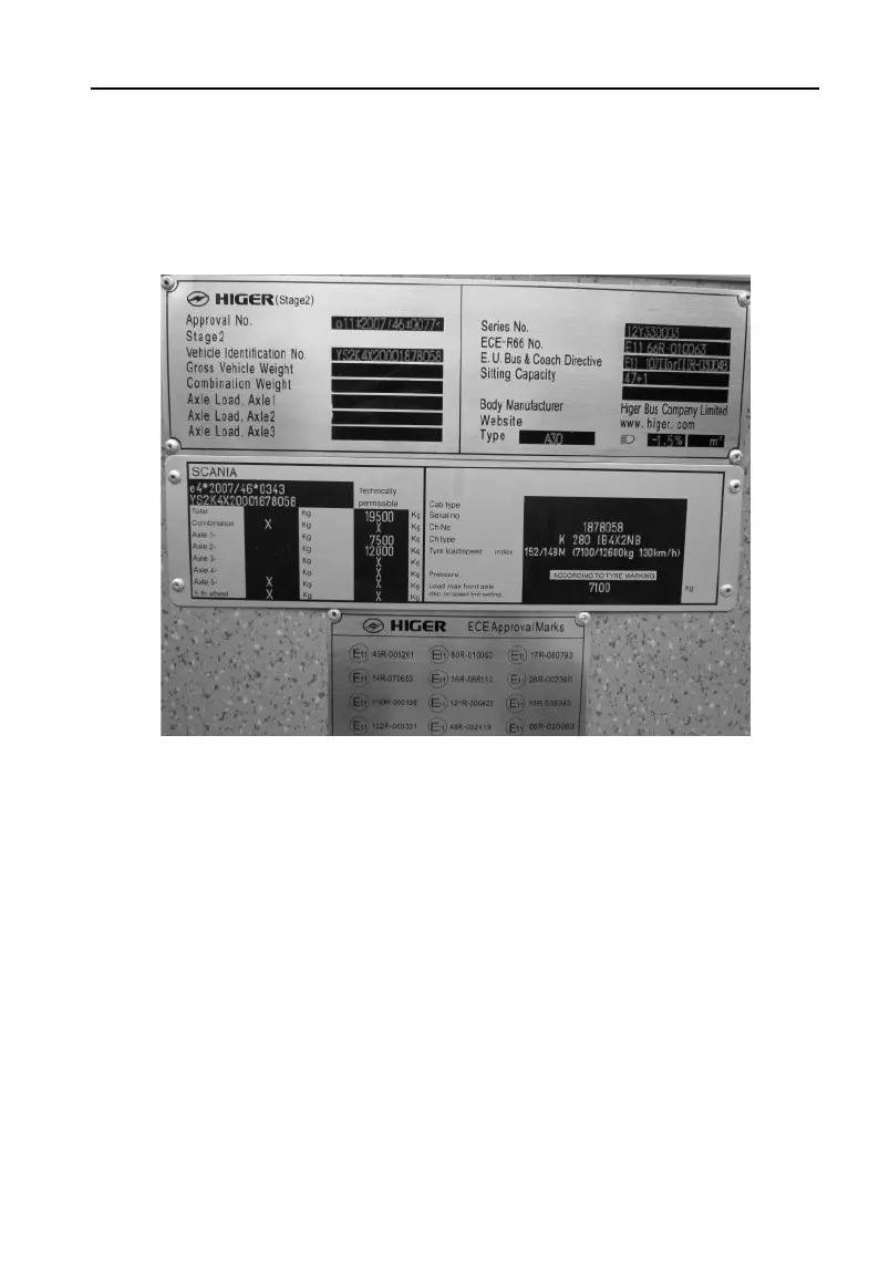 Scania Higer A30 - Vehicle Identification; Nameplate Details