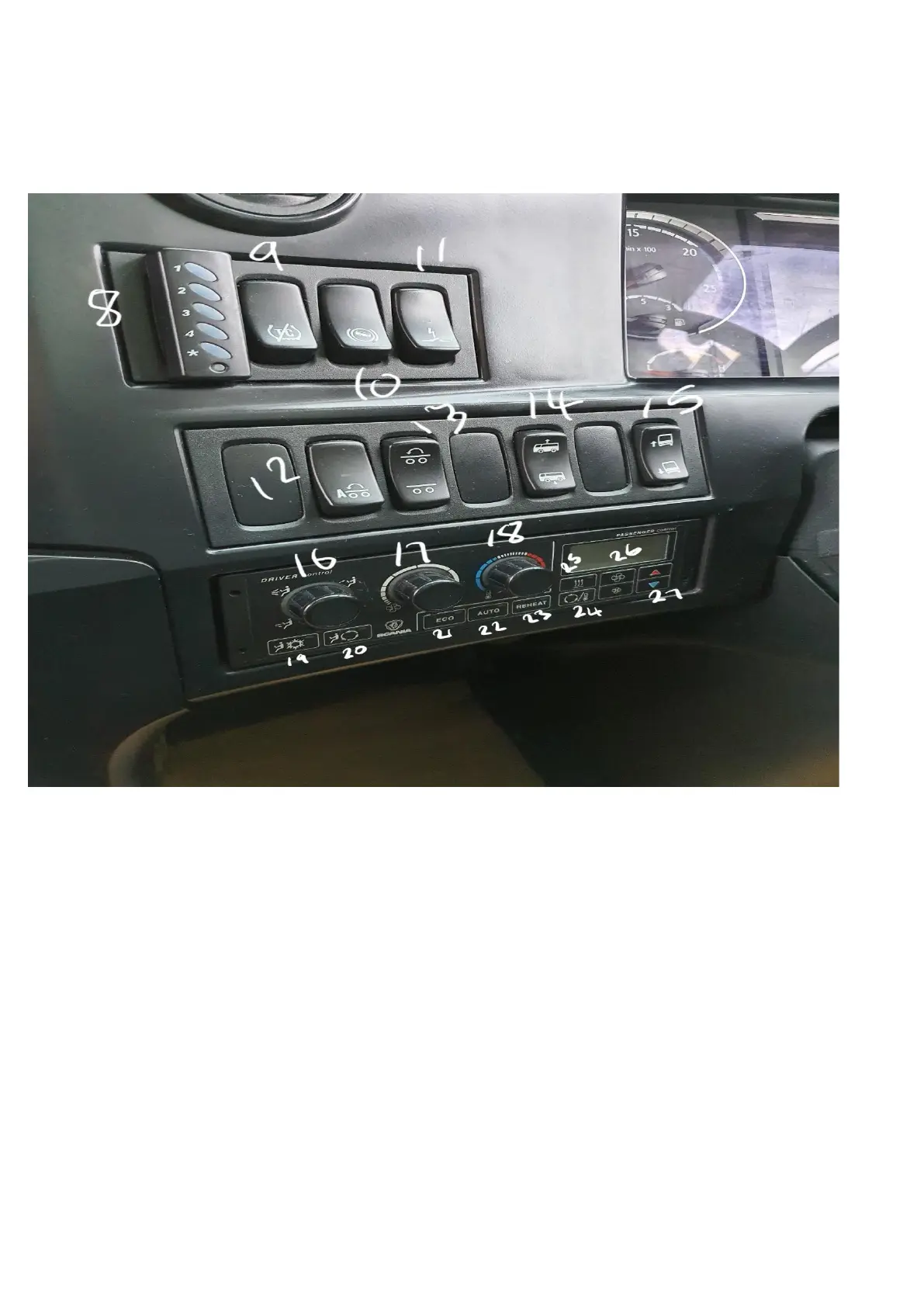 16.Driver temp direction 27.Pax temp control.