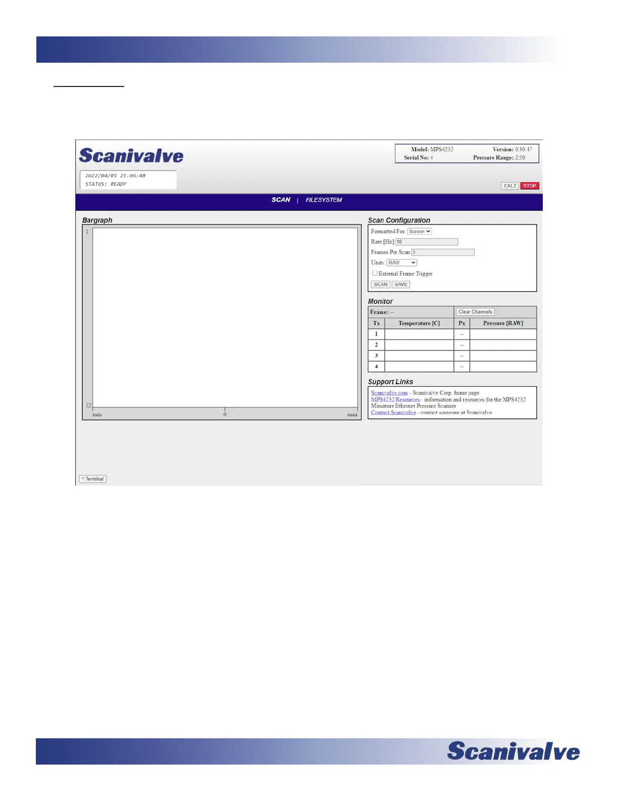 current rmware version, serial number, and the nominal pressure range.