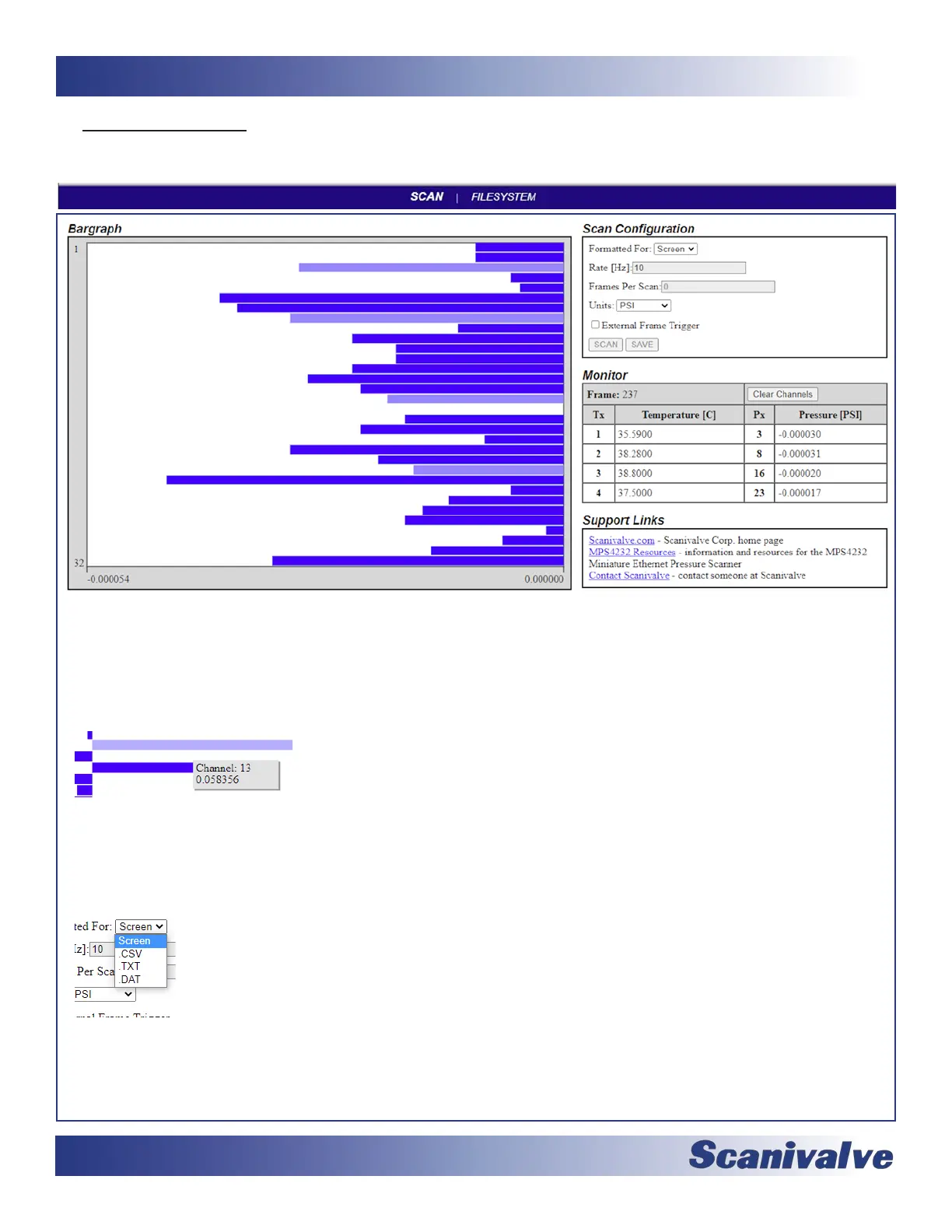 BARGRAPH -- This area of the Scan page can display pressure data for each channel in the MPS when scanning. Data will only