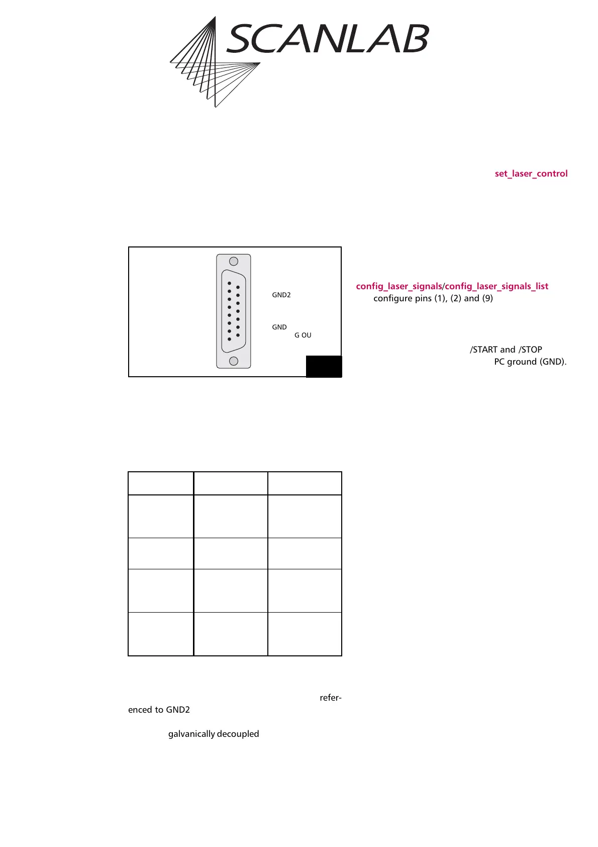 Pin-out of the 15-pin female D-SUB connector for the laser (LASER)
