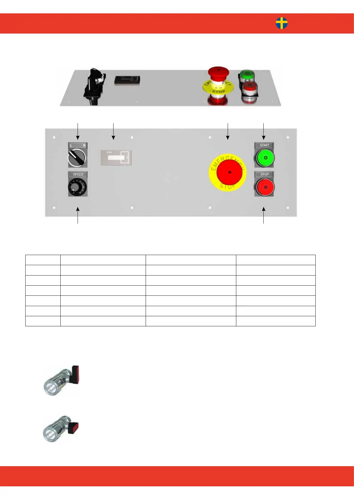 Tabell 41 Beskrivning av kontrollpanelen