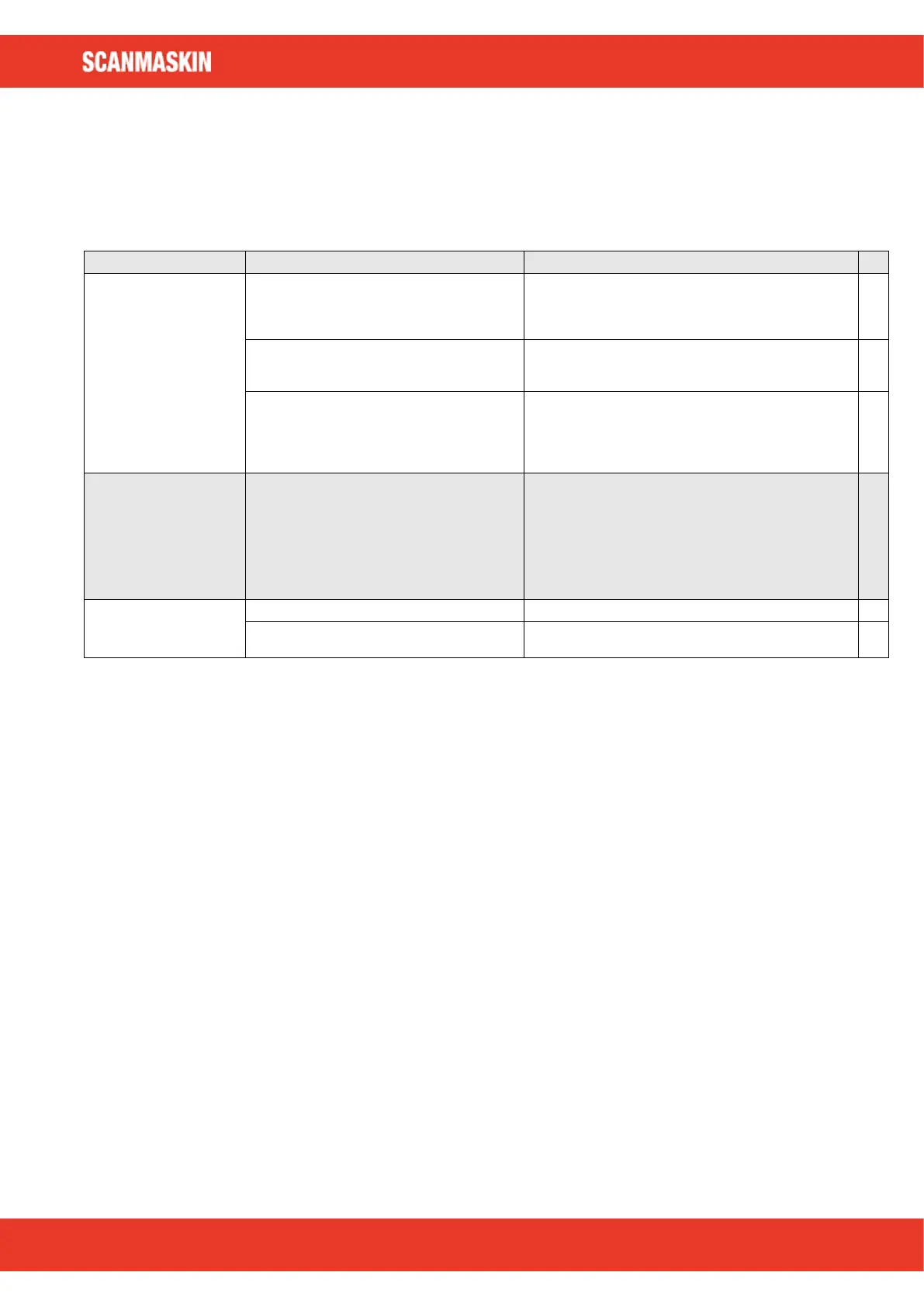 Maskinen startar ej Kraftkällan är strömlös Kontrollera säkringarna vid arbetsplatsens kraftkälla.