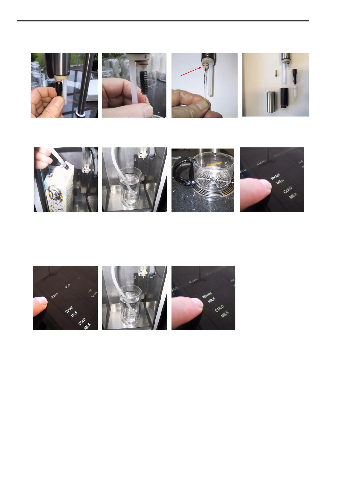 Press CLEAN to flush Place a jug with cold Press WARM MILK