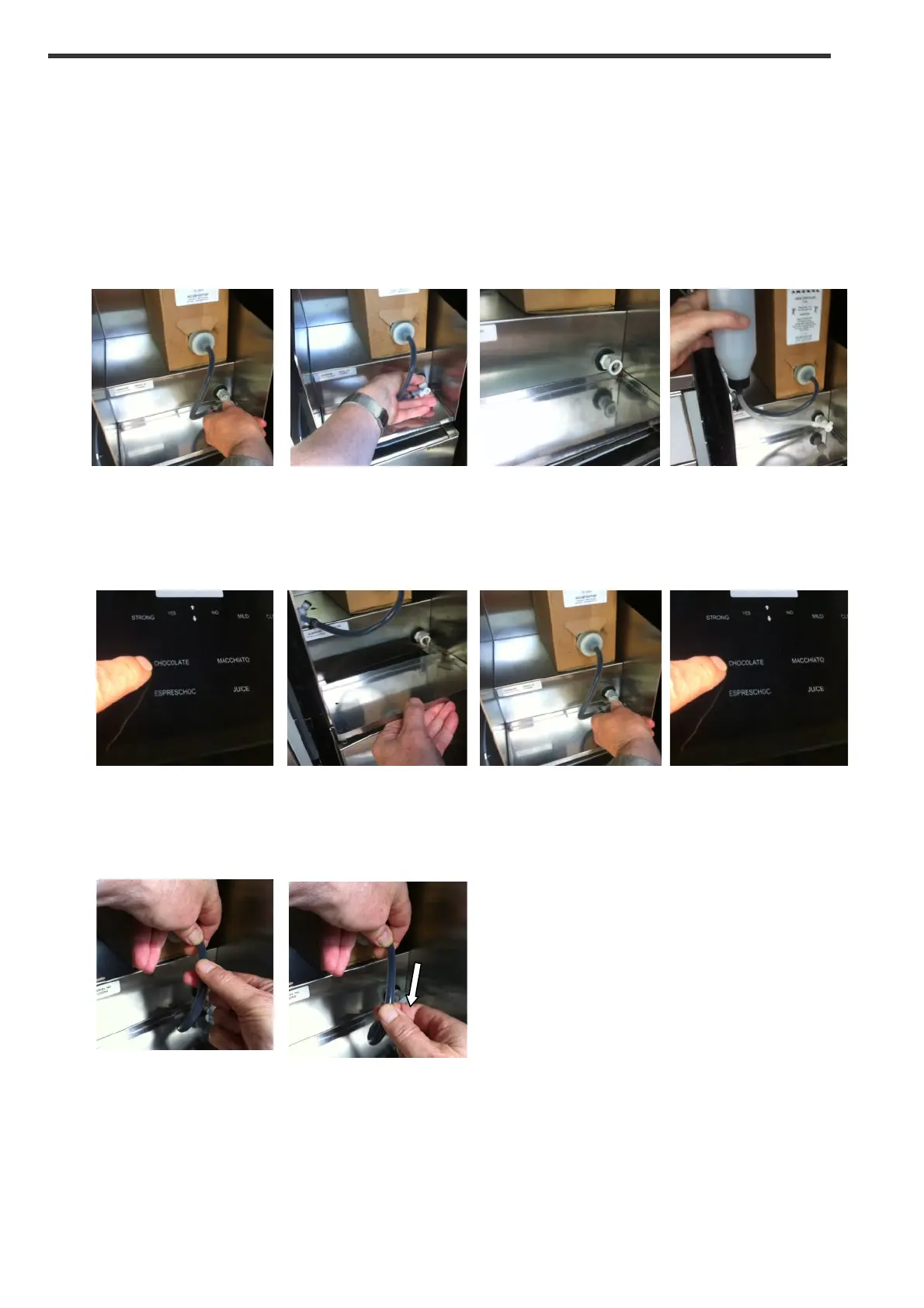 Press CHOCOLATE Remove the drip tray Connect the chocolate Press CHOCOLATE