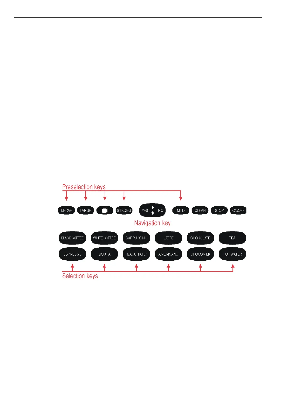 These buttons will activate a pre-selection to the next drink. The pre-selection buttons may differ from