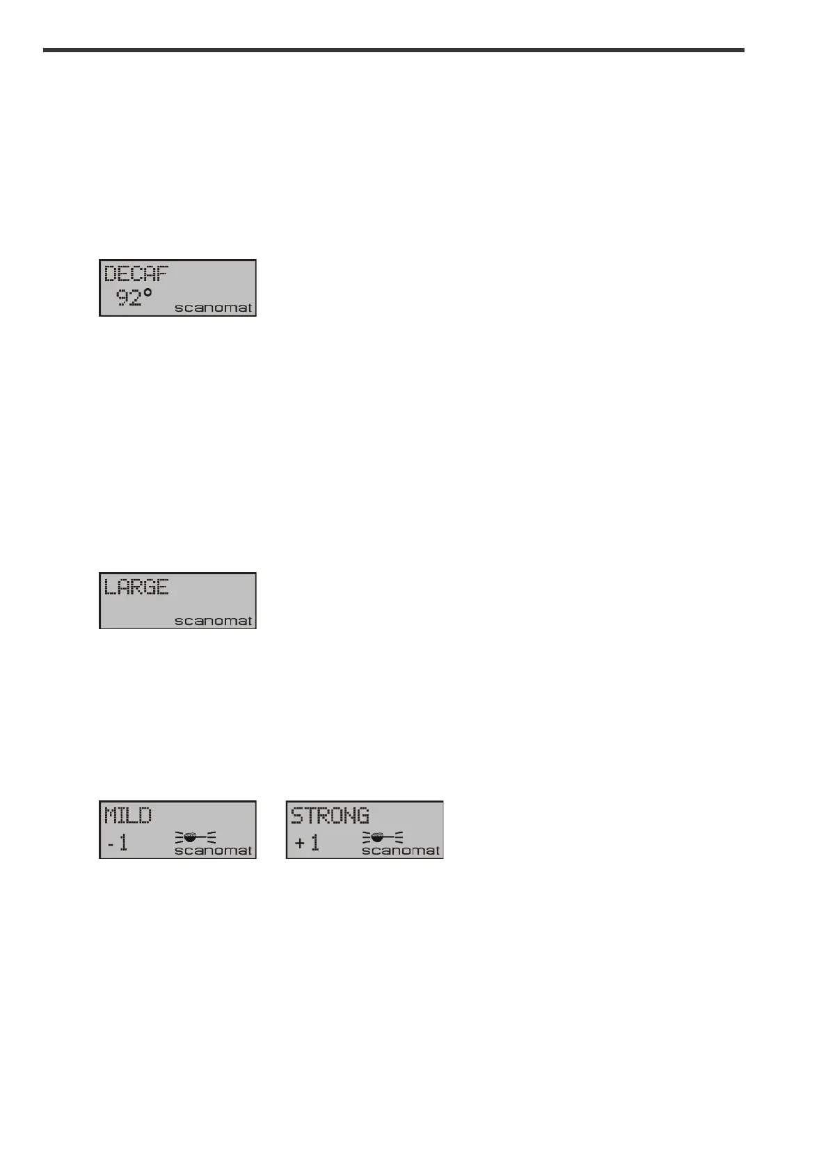 It is possible to adjust the strength for each individual drink by pressing STRONG or MILD prior to