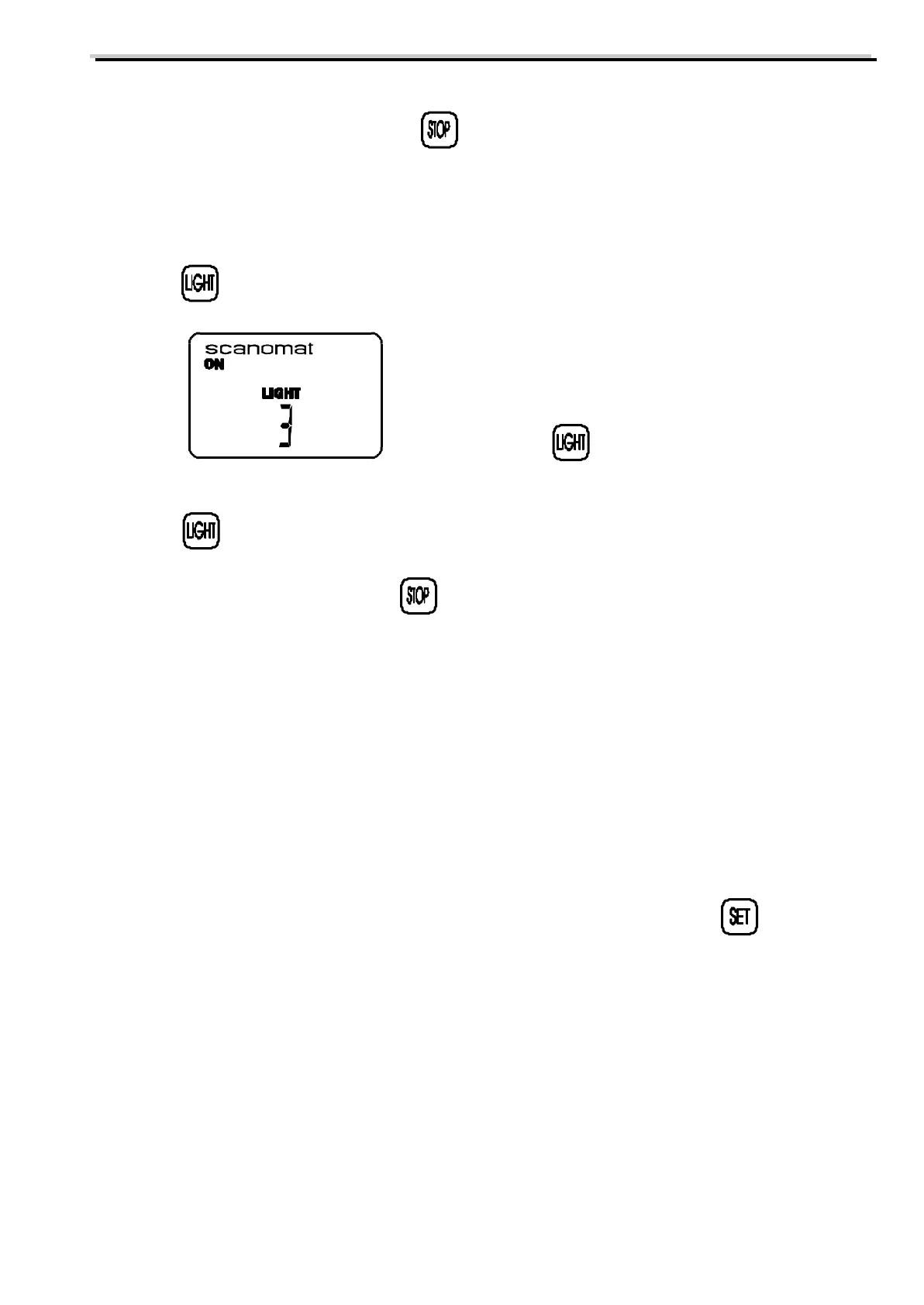 Pressing will activate the pre-selection LIGHT (mild). The display will show: