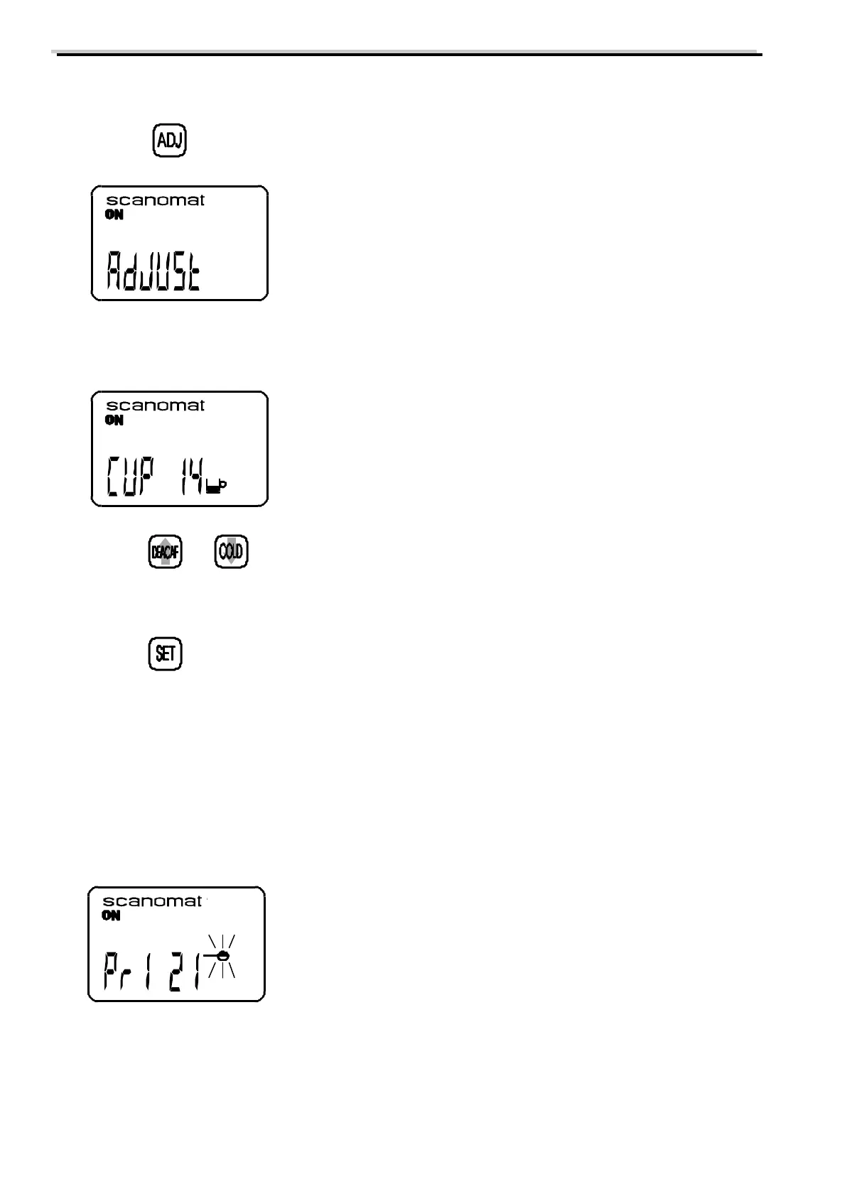 b) Press the key for the selection to be adjusted and the display will now show the current setting for