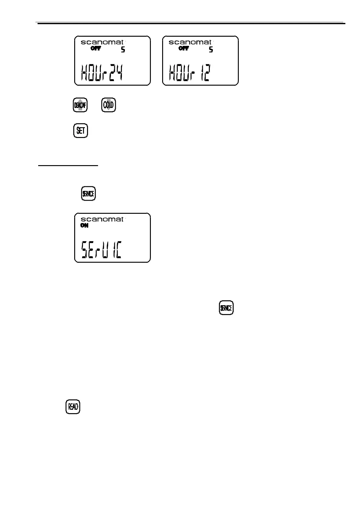 SERVICE program is activated by pressing a code on the keyboard. This code is available