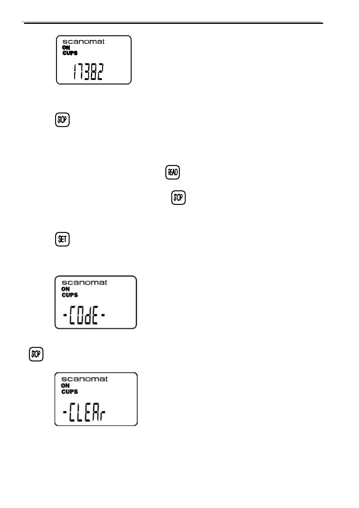 show the total number of cups taken since the counter was last reset. Pressing the individual selection keys