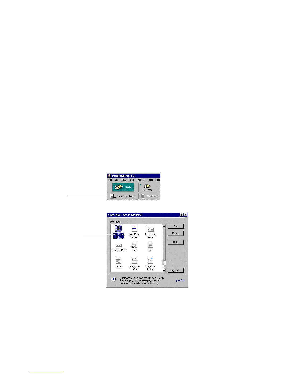 Figure 5–5. Page Type dialog box with Any Page (b&w) selected