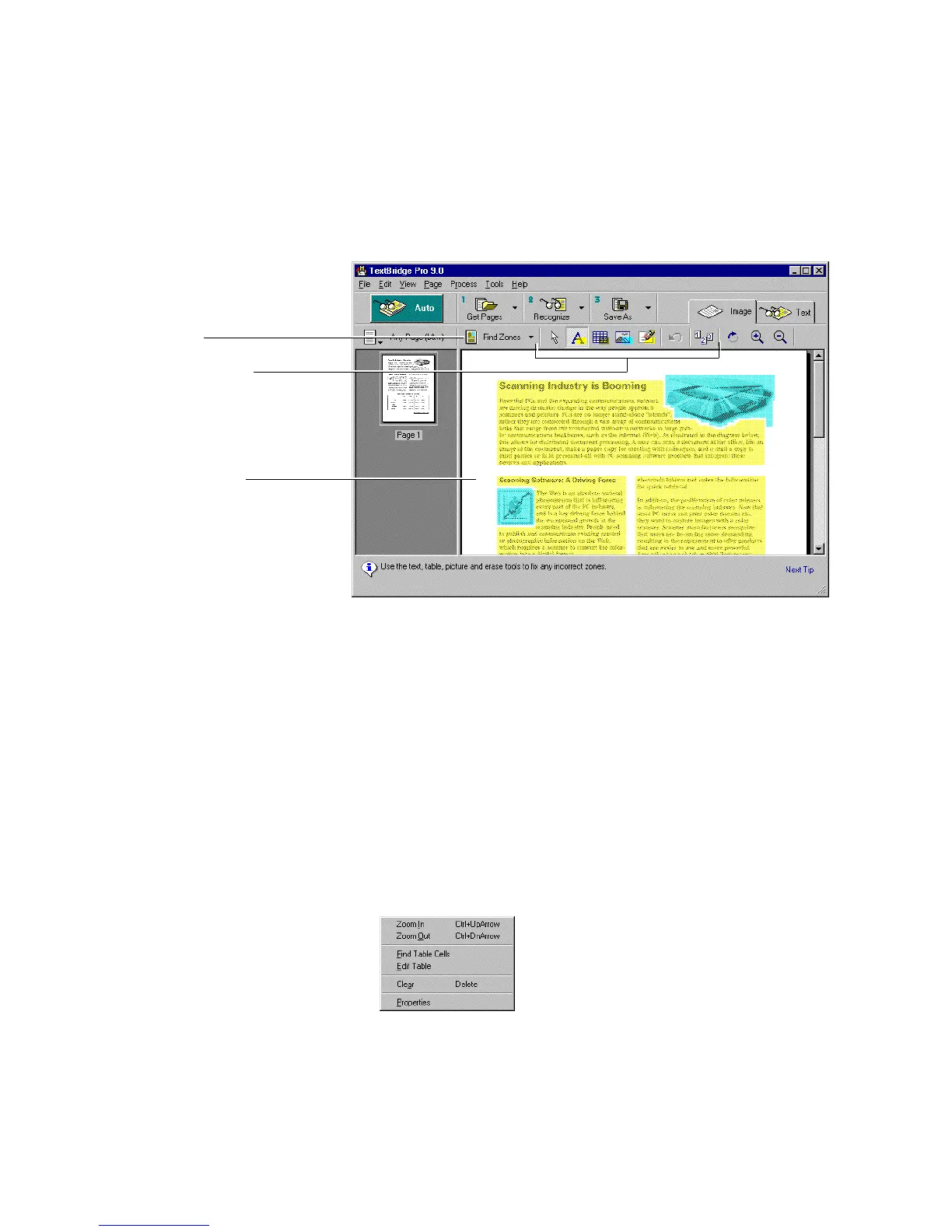 • Right-click the zone and use the zone shortcut menu to zoom,